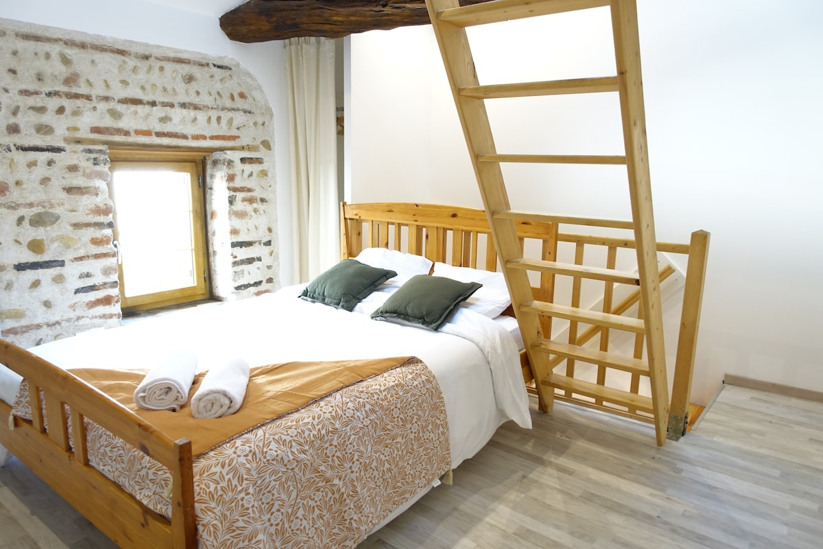500m lakad mula sa lungsod ng Peruges, sa isang lumang kiskisan ng 16°, sa pamamagitan ng stream, duplex apartment na may 2 independiyenteng silid - tulugan at isang malaking kusina. Ang bawat isa sa mga silid - tulugan ay may banyo na may toilet at shower. Ang kusina ay nilagyan at nagbibigay - daan sa tanghalian para sa mga pamilya o sa mga kaibigan. Kinukumpleto ng isang bbq sa hardin ang kagamitan. Libreng pribadong paradahan, na may posibilidad na tumanggap ng mga bisikleta, motorbike o vintage na kotse sa ilalim ng takip. Kung kinakailangan, posibilidad ng karagdagang 2p sofa bed.
