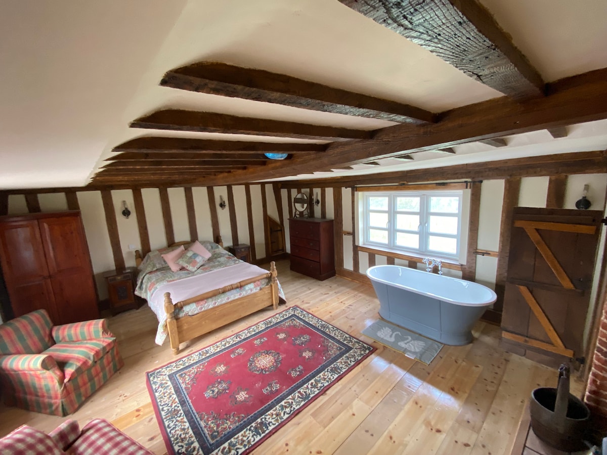 The Hobbit is a small cosy hideaway, located within the grounds of a beautiful English country garden. The space gives the feeling of an old ships cabin, with original oak beams and panelling. The place might be small but still has all the comforts of home, including a standard double bed, underfloor heating and a deep roll top bath. As well as being furnished with antique fixtures and fittings. The Hobbit has a small but lovely garden room, where guests can just watch the world go by.