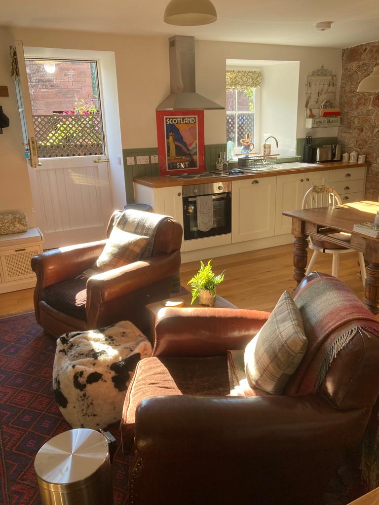 Dovecot Dubs is a recently renovated, luxury cottage in the heart of historic Lanark. It is within easy walking distance of shops ,restaurants, pubs and train station . Completed in September 2020 this detached cottage features a large living room,beautiful dining kitchen , two double bedrooms with ample storage, wc room upstairs and luxury bathroom with bath and separate large walk in shower. The cottage is fully equipped for 4 people . There is your own designated parking space but also plenty of further parking in the surrounding area. A small bistro table and chairs provides outdoor seating for morning coffee , evening drinks . Dovecot Dubs is in the perfect location in the ancient Royal Burgh(1140) of Lanark with it’s connections to William Wallace. The cottage is just 1 mile from the Unesco World Heritage village of New Lanark and the picturesque Falls of Clyde. There are numerous beautiful walks and gardens to visit including the Clyde Walkway at Castlebank Park. Glasgow and Edinburgh are 1 hours drive away as well as the Scottish Borders . Dovecot Dubs welcomes you with warm hospitality and will not disappoint.