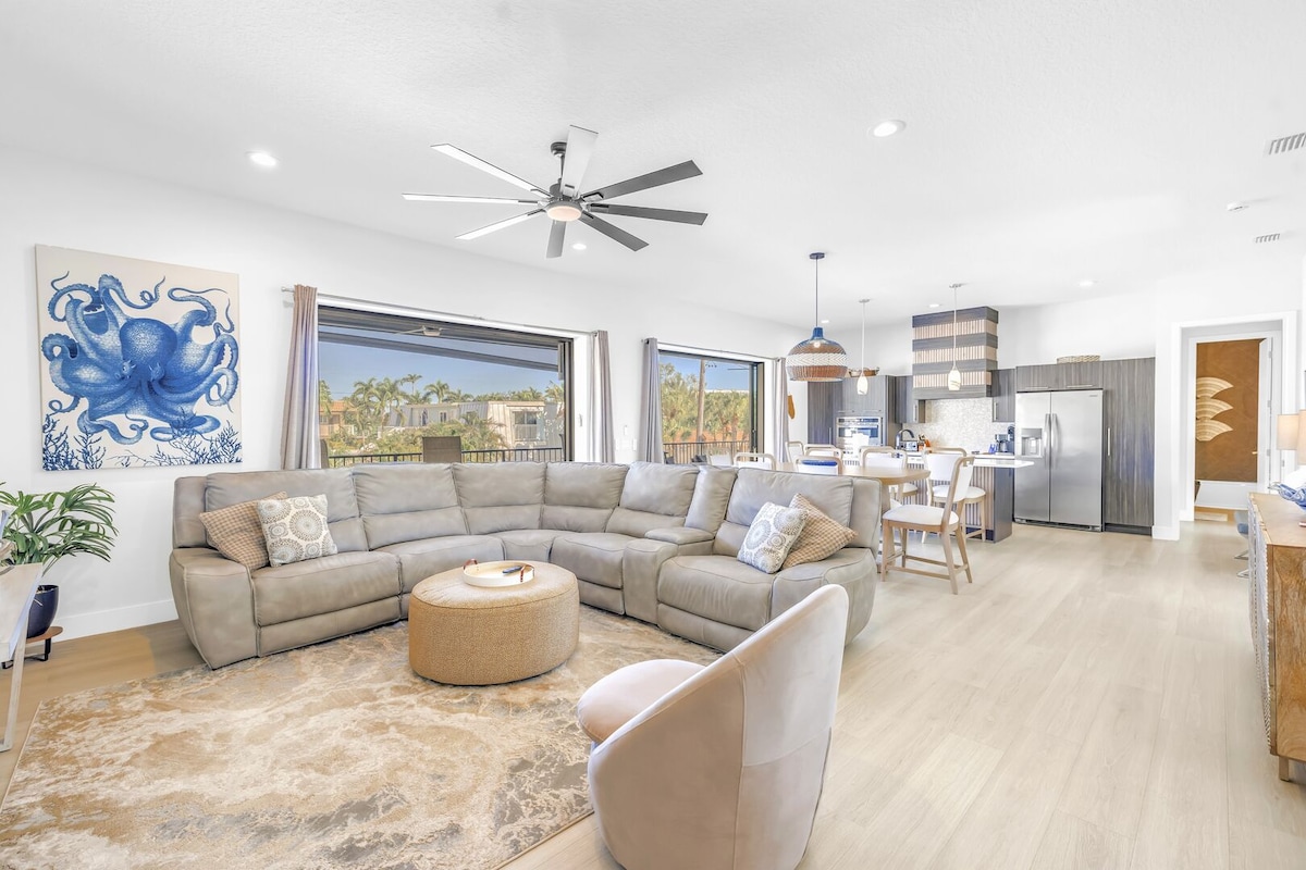 Welcome sa Vistalodgings Villa Del Sol kung saan nagkakatuwaan ang mga pamilya ☀ 3 silid - tulugan: 1 king, 1 queen, 1 full, 1 twin bed at 2 kumpletong banyo ☀ Kusinang kumpleto sa gamit: Keurig dual coffee maker, waffle maker, air fryer, electric kettle, blender, mixer, mga kaldero at kawali ☀ Dining area para sa 8 ☀ Mabilis na internet Wi - Fi ☀ May heated pool na walang bayad ☀ EV charger ☀ Shuffleboard, Pac - man arcade ☀ 5 Smart TV na may Disney Plus ☀ Mga bisikleta, beach chair, payong, cooler, beach toy ☀ Bakal