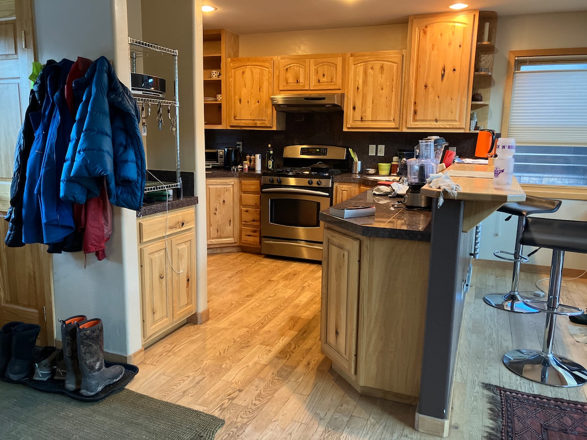 Full kitchen & bathroom remodel! New Paint, New boiler/instant heat system. House is 1/2 block from Rainbow park for the kiddos. Walk to town or catch the town shuttle (1.5 blocks away) up to Mt. Crested Butte to enjoy your favorite snow sport or downhill biking activities, and more restaurants/shops! *5th/6th guests are extra and included in total when booking. *Can sleep 8 w/guest house, sharing the yard! Inquire within. ***Business lic #7140