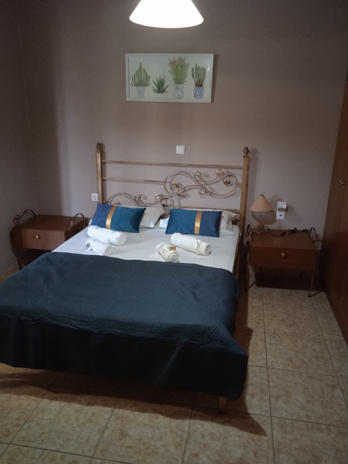 Matatagpuan ang aming maliit na family - run apartment complex sa silangang bahagi ng village, 10 minutong lakad ang layo mula sa town center. Makakaasa ka rito ng maraming kapayapaan – ang mga cicada lang ang makikipag - ugnayan sa maiinit na araw. Mayroon ding kitchenette, shower room, air conditioning, at Wi - Fi ang bawat kuwarto. Hindi lang puwedeng manigarilyo sa mga kuwarto. Tamang - tama para sa mga pamilyang may mga anak at naghahanap ng libangan. Nagsasalita ako ng Griyego, Aleman at Ingles