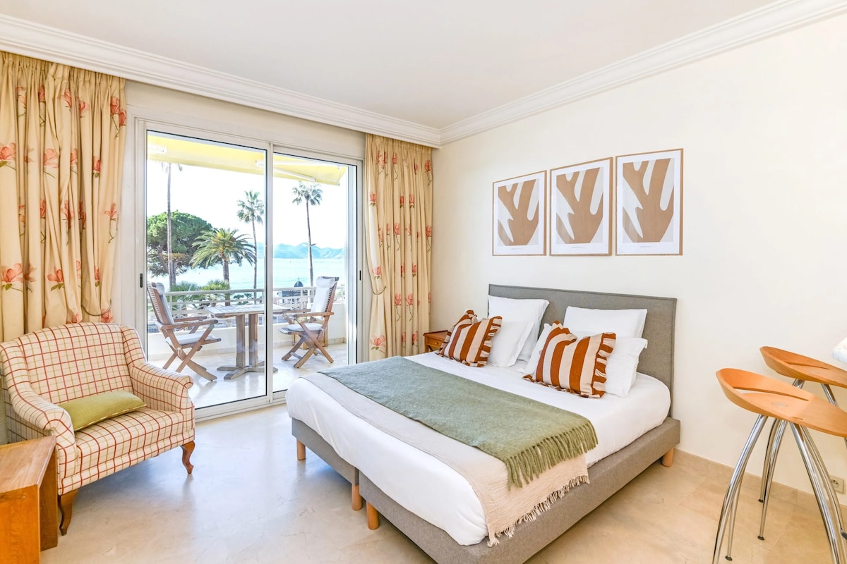 EXCLU AIRBNB! Masiyahan sa isang ganap na na - renovate, naka - air condition, eleganteng, at sentral na matatagpuan na apartment sa isang ligtas na tirahan na 50 metro lang ang layo mula sa dagat. Idinisenyo ang lahat para sa iyong kaginhawaan. Napakaginhawang lokasyon, 300 metro mula sa convention center, mga tindahan, at mga restawran, sa isang marangyang tirahan sa Croisette. Masisiyahan ka sa isang ganap na na - renovate at napaka - praktikal na apartment na 38m² na may maganda at kumpletong kusina, washing machine, at kakayahang matulog ng 4 na tao (silid - tulugan + sofa bed).