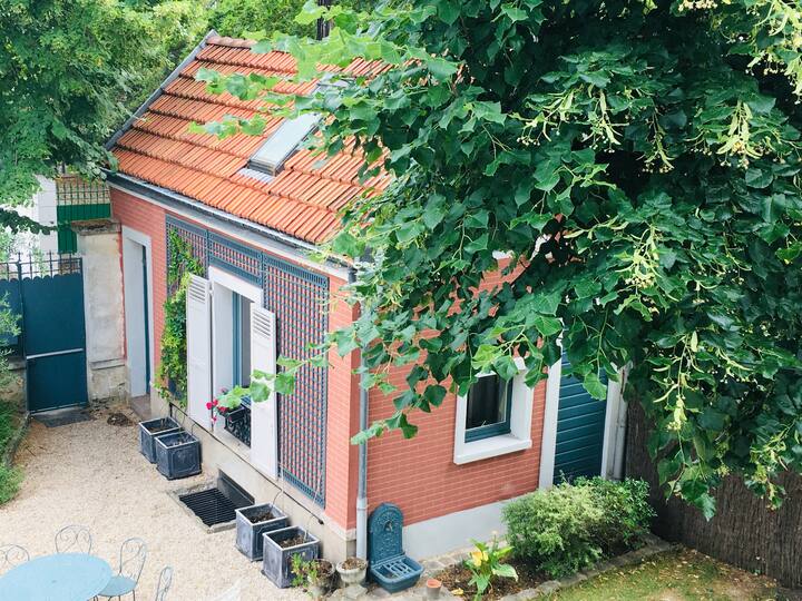 . Ang bahay na ito ng 2 silid - tulugan, 1 sala at kusina, bahagi ng isang ari - arian na may malaking hardin at swimming pool (hindi naa - access ng bisita sa panahong ito) ay matatagpuan sa isa sa mga pinaka - eminently romantikong at tahimik na kanlungan ng Paris ’na nakapalibot: LE VESINET; Inayos lang ang taglagas na ito, ito ang teatro ng mga dumadaang swan o iba pang mga aquatic na ibon kung kanino ang mga lawa at ilog sa malapit ay isang perpektong kanlungan.
