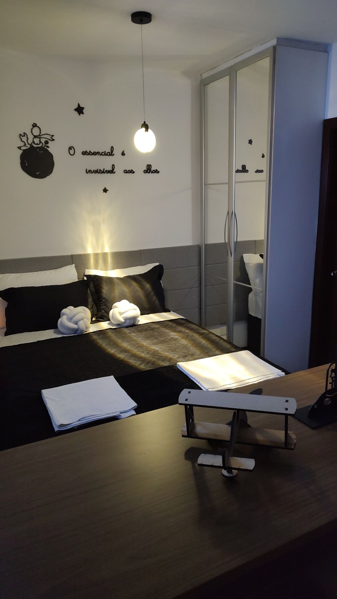 Flat sa marangal na kapitbahayan, na may pribilehiyo na tanawin ng Esplanade of Ministries, Cathedral at National Museum. Napakagandang lokasyon, sa gitna ng Brasilia, sa pagitan ng Asa Sul at Asa Norte, 15 minuto ang layo mula sa paliparan. Mayroon itong paradahan, gym, Jacuzzi, swimming pool, gourmet space at kolektibong penthouse. Impormasyon: Kakailanganin mong ipadala ang litrato ng dokumento kapag nakumpleto na ang reserbasyon para sa pag - check in sa hinaharap. 1 (isang) set lang ng mga sapin at tuwalya ang available kada reserbasyon.