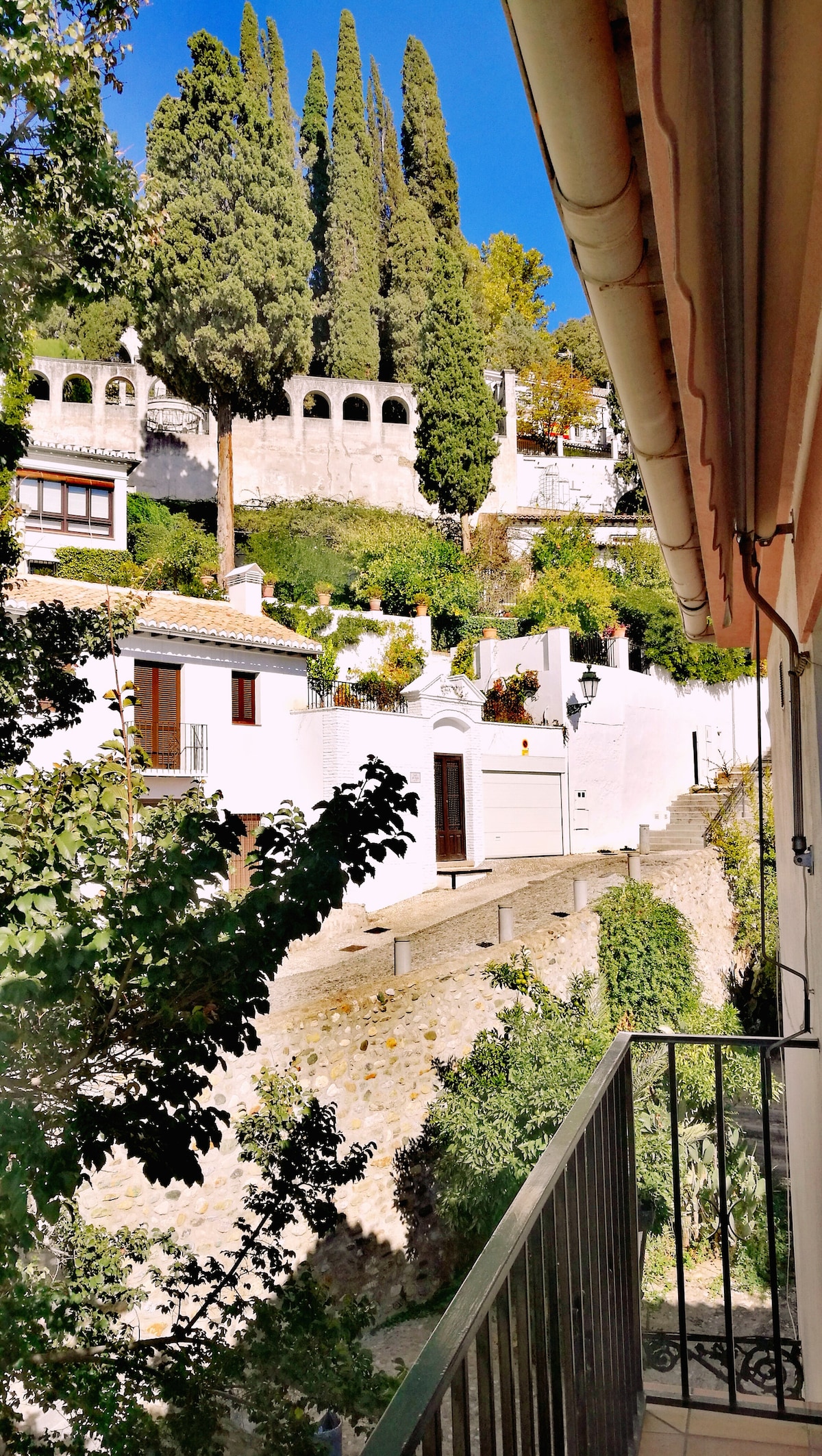 Hindi kapani - paniwalang apartment sa makasaysayang kapitbahayan ng Granada na tinatawag na Albaicín. Mula sa kama, magkakaroon ka ng mga kahanga - hangang tanawin ng Alhambra na mukhang mahahawakan mo ito gamit ang iyong mga kamay... Mula sa sala, maaari mong tangkilikin ang parehong sensasyon. Matatagpuan sa isang walang kapantay na lugar, sa harap mismo ng Alhambra kung saan matatamasa mo ang pinakamagaganda at pinakamalapit na tanawin ng kahanga - hangang monumento na ito.