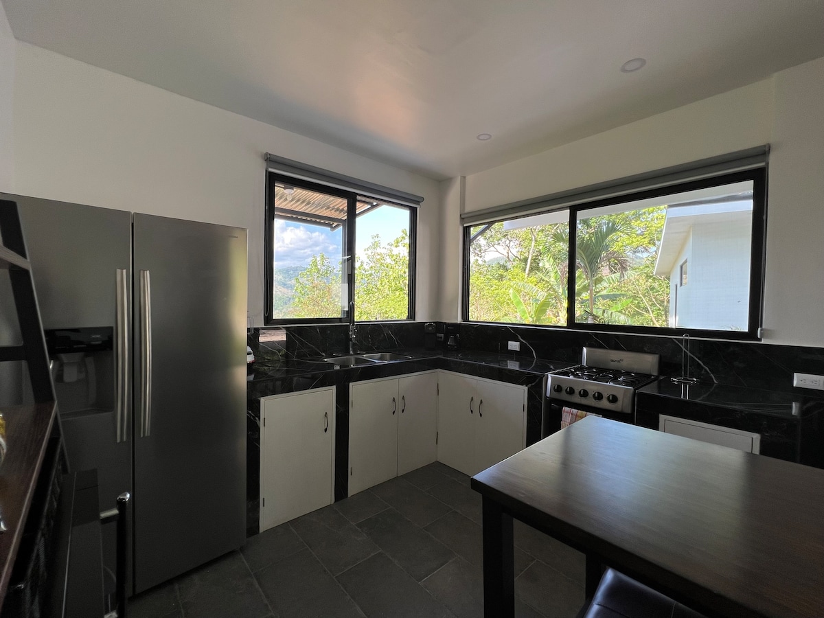 Nakakabighaning bahay na yari sa kahoy sa kabundukan ng Hojancha! Tangkilikin ang katahimikan, tropikal na kalikasan at mga kamangha - manghang tanawin sa mga berdeng burol ng Nicoya Peninsula. Nag - aalok ang magiliw na bahay ng hiwalay na kuwarto, komportableng sala, modernong kusina na may granite slab at de - kalidad na banyo. Terrace na may tanawin, harding tropikal na may pool, mga hummingbird at paruparo. Perpekto para sa mga biyahe sa mga beach, talon, at taniman ng kape—at para maranasan ang buhay ng mga Tico: pura Vida!