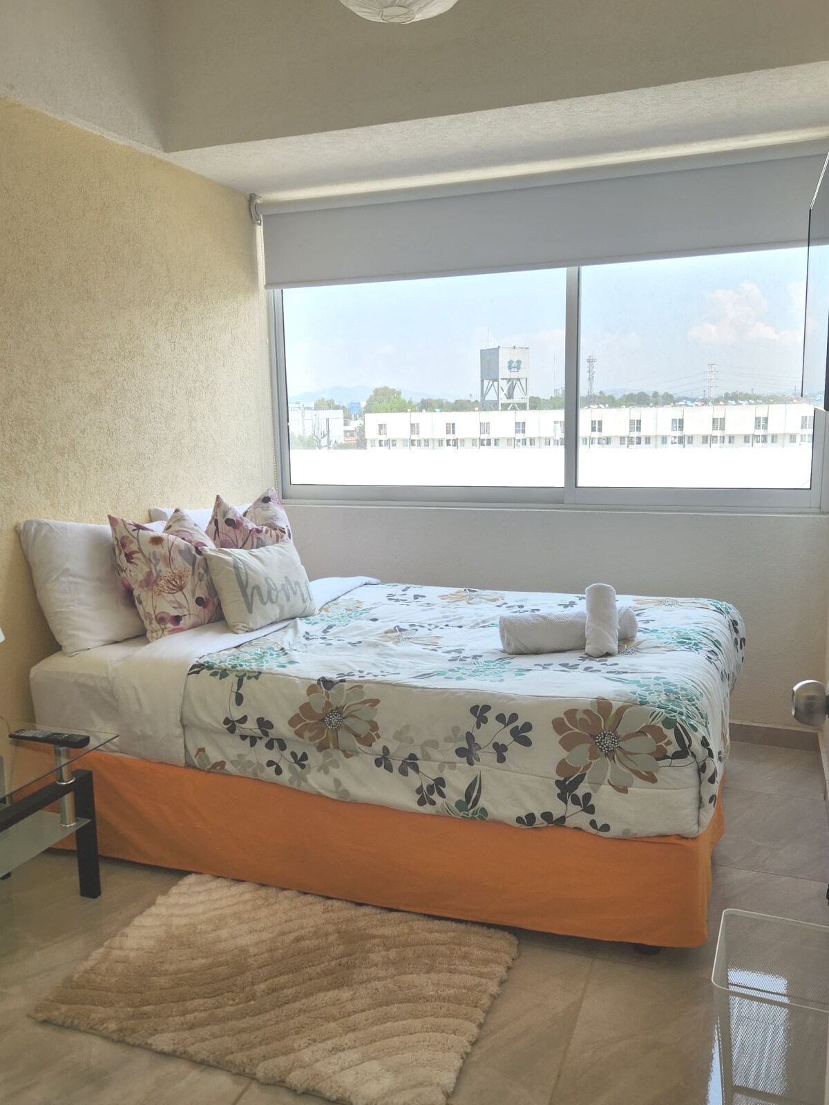 Maliwanag na apartment na may 1 silid - tulugan sa isang maginhawang avenue na may mga grocery store, restawran, at parmasya sa malapit. Maigsing lakad lang ang layo ng pampublikong transportasyon. Matatagpuan sa ika -5 palapag, nag - aalok ito ng magagandang tanawin at 4 na may sofa bed at inflatable mattress. Masiyahan sa hardin sa rooftop na may mga BBQ, outdoor gym, co - working space, at lugar para sa paglalaro ng mga bata. 20 minuto lang mula sa Polanco, Reforma, at Basilica. Mainam para sa pagtuklas sa Lungsod ng Mexico!