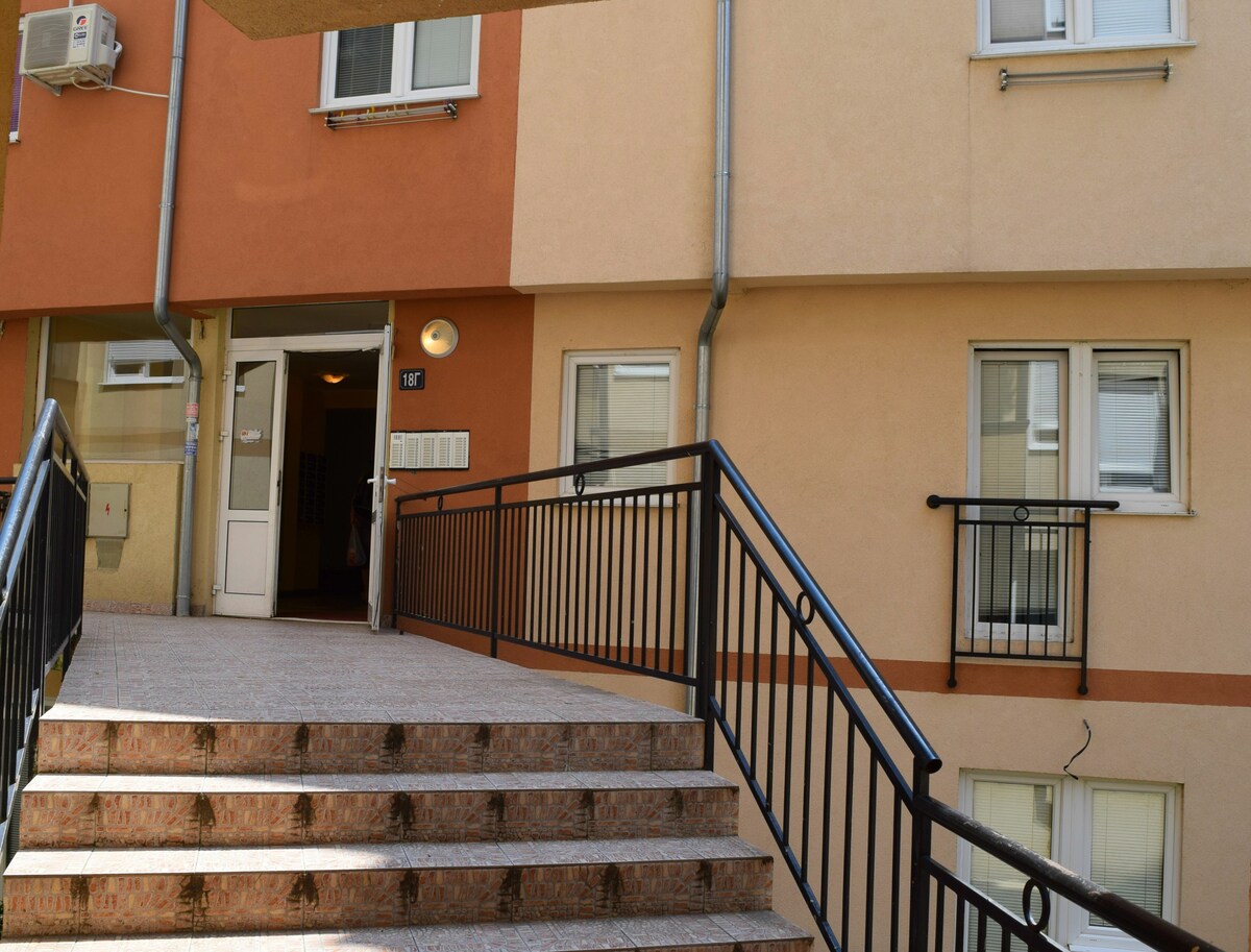 The apartment (25m2) is on the third floor from 3 floors in the beautiful green area, Kosutnjak, Luke Vojvodica 18 g Street. 100m from a bus station. Distance from the center is about 7km or 25min. by bus. From Ada Lake is 4km. The market is very close.