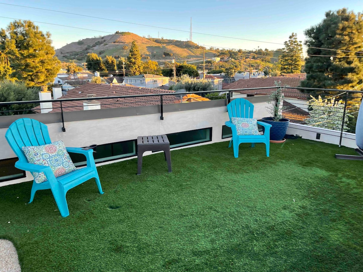 Isa itong bagong itinayo at natapos na guesthouse sa isang tahimik na kapitbahayan na sentro ng lahat ng kasiyahan sa Los Angeles. Maigsing distansya ito papunta sa downtown Culver City, dose - dosenang magagandang restawran/bar, grocery store at boutique shop. May libreng paradahan sa kalye na ibinibigay sa mga bisita. Bukod pa rito, maikling lakad ang layo ng LA Metro Expo rail line at mga bus. May gate na access sa bakuran at hagdan papunta sa apartment. Magkakaroon ka ng access sa patyo sa ibabaw ng bubong na may nakakamanghang 360 degree na tanawin.