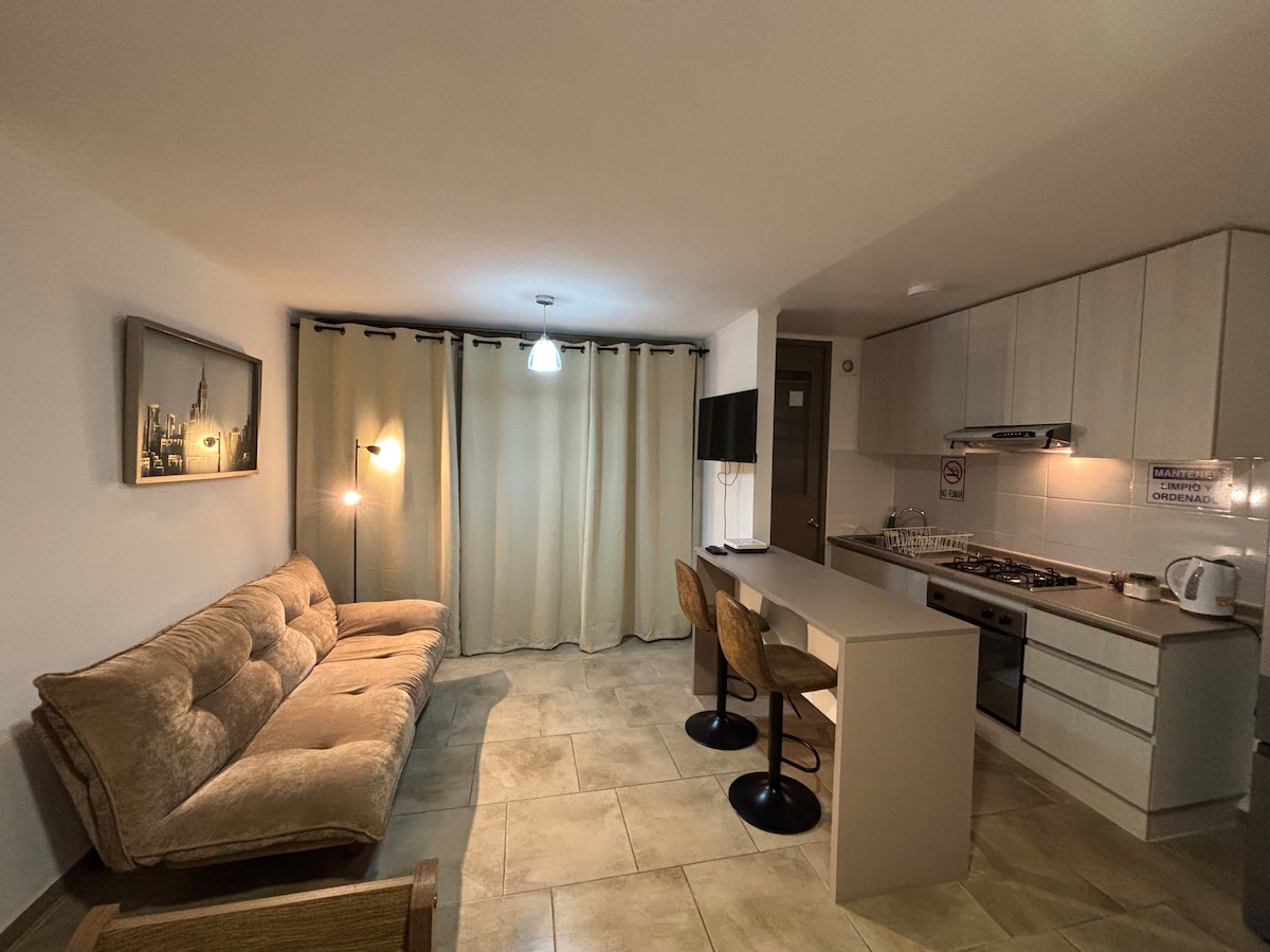 Welcome sa perpektong matutuluyan na parang sariling tahanan sa isa sa mga pinakagustong puntahan sa Curicó. May open‑concept na sala at kainan, dalawang malaking balkonahe, at modernong kusina at banyo na kumpleto sa kagamitan ang maaliwalas at maluwag na condo na ito na may isang kuwarto. Kasama sa mga amenidad ang: Swimming pool, kumpletong gym, co-work room, 24 na oras na concierge service, paradahan. Matatagpuan sa isang tahimik at ligtas na kapitbahayan, ilang minuto ka lang mula sa mga boutique shop, restawran, at café, at may access sa mga pangunahing highway.