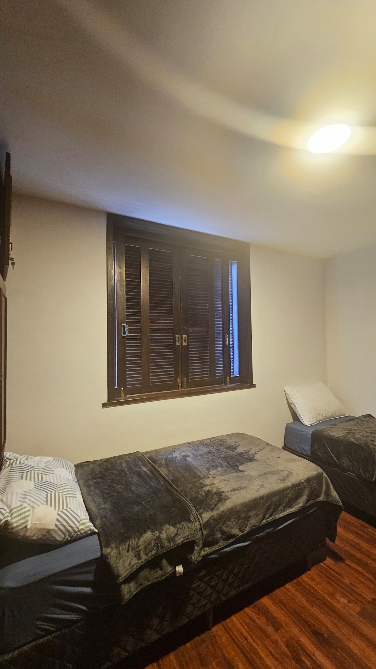 Maaari kaming mag - ccomodate ng hanggang 10 bisita, na may sakop na parking space para sa dalawang sasakyan, fiber optics broadband internet conection at wi - fi. Nilagyan ng 49" LG Smart TV, cable tv, kabilang ang mga HBO & Telecine channel at JBL Sound Bar na may bluetooth. Natatanging estilo at personalidad sa isang sapat na espasyo na may mga maaliwalas na hardin, ang atmophere ay isa sa kabuuang katahimikan at privacy na 15 minuto lamang ang layo mula sa Curitiba town center. Kung kinakailangan, makakapagbigay kami ng access sa karagdagang panlabas na banyo.