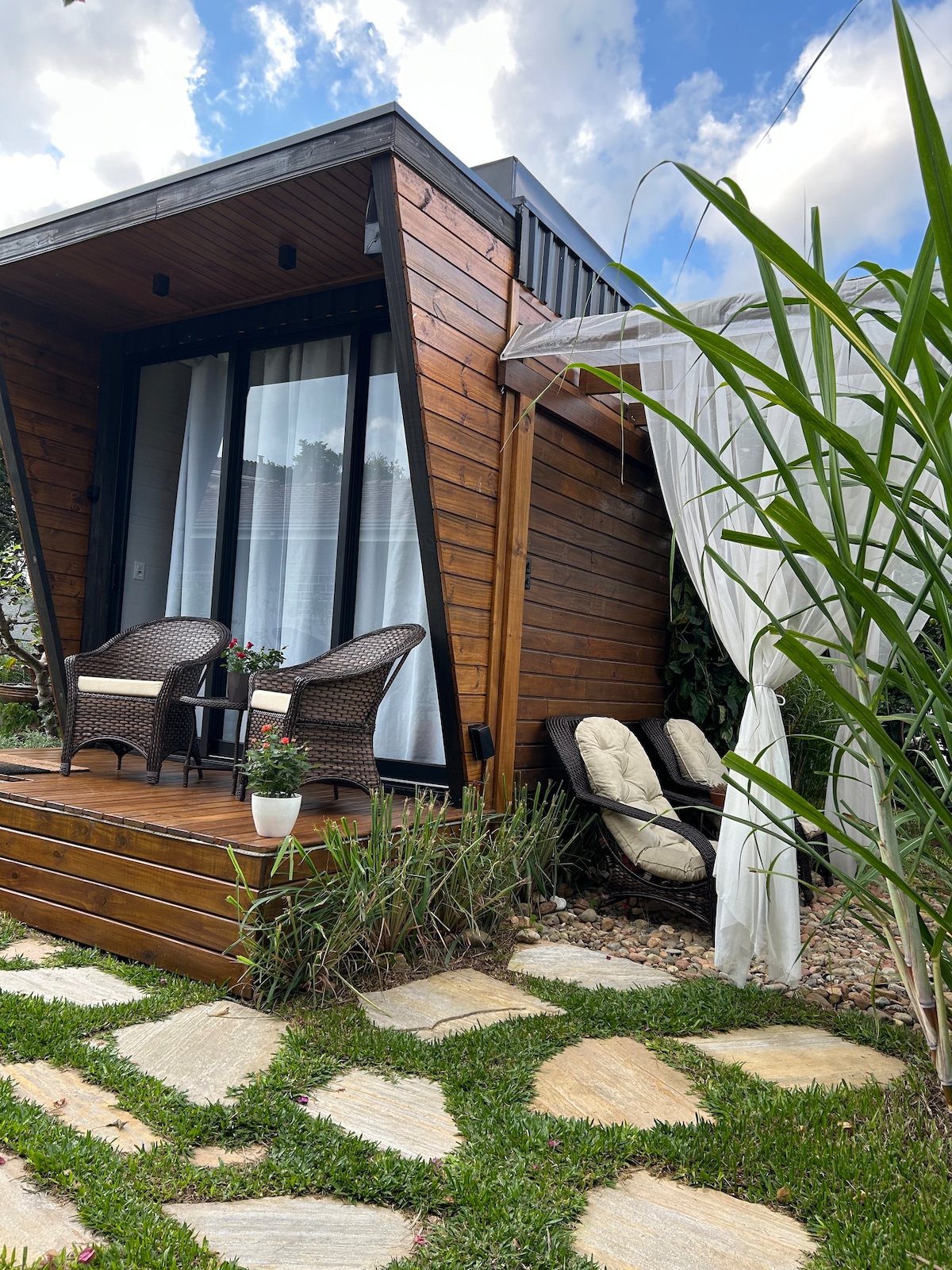 Ang mga maliliit na bahay ay naging isang trend at ang pagsunod sa linyang ito ay functional na mini house, komportable, modernong dekorasyon ay perpekto para sa isang mag - asawa, mahusay na naiilawan, na may balkonahe, ay may estruktura na kailangan mo. Halika at tamasahin ang isang karanasan kung saan matatanaw ang isang magandang hardin at ang pagkanta ng mga ibon.