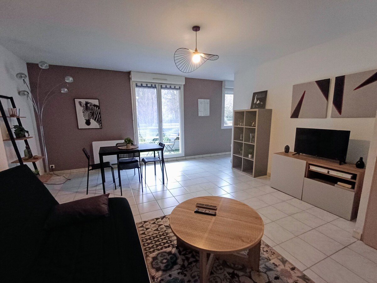 Condominium, maliwanag na tawiran. Ground floor. Mga electric roller shutter. 1 silid - tulugan na may 1 pandalawahang kama, 1 silid - tulugan na may 2 pang - isahang kama, 1 banyo, 1 kusinang kumpleto sa kagamitan, 1 sala - sala may sofa bed na may 2 higaan, 1 paradahan on site. Matatagpuan malapit sa docks ng Allier, malapit sa isang shopping center, ang lahat ng 5 mm sa pamamagitan ng paglalakad, pampublikong transportasyon 30 metro ang layo.