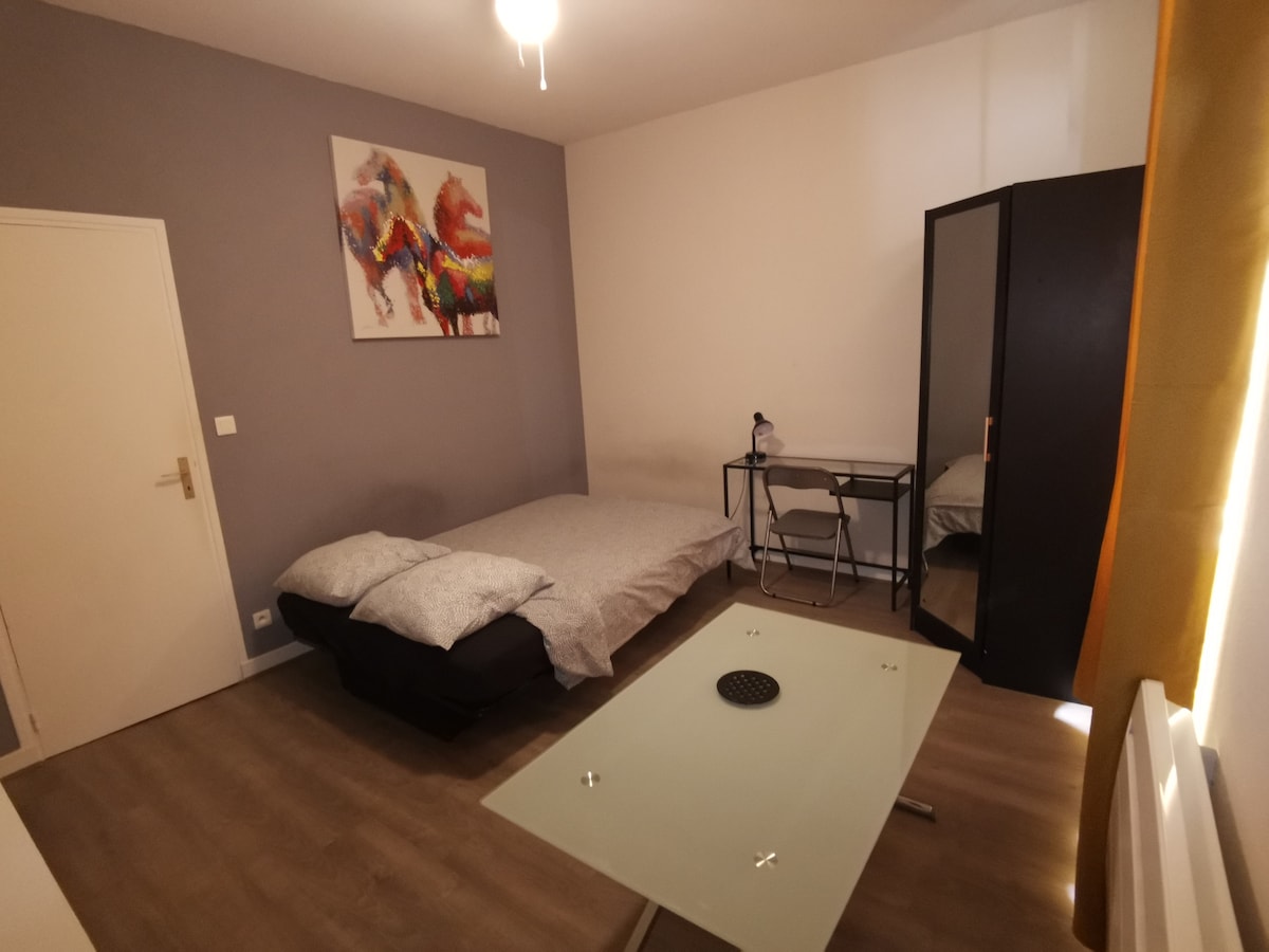 Mga Bakasyon at Paggamot para sa 2 hanggang 4 na tao (Mga) Hakbang sa Gabi: mga propesyonal, vrp, internship o pagsasanay. Mga pagbabago sa pagpepresyo depende sa tagal ng pamamalagi. Para sa panahon mula Agosto 10 hanggang 25, 3 gabing minimum. Mga sapin at linen na kasama sa presyo (pansin, para sa 2 tao, 1 higaan lang ang ihahanda kung hindi hihilingin) 5mn istasyon ng tren, post office, Grand Marché, mga tindahan, 10mn thermal bath Malapit sa hintuan ng bus, may elevator at ligtas na access Balcony, kung saan matatanaw ang inner courtyard Hiwalay na palikuran 140 higaan, 140 sofa bed