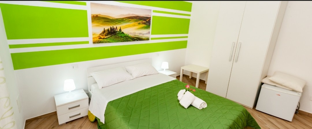 La camera Dionisio dispone di un letto matrimoniale e un bagno in camera. Pur tuttavia la camera è provvista di molti confort: aria condizionata, tv, internet, set bagno, lenzuola, prodotti per l'igiene personale, che rendono il soggiorno gradevole e pratico. La camera è provvista di bagno privato.