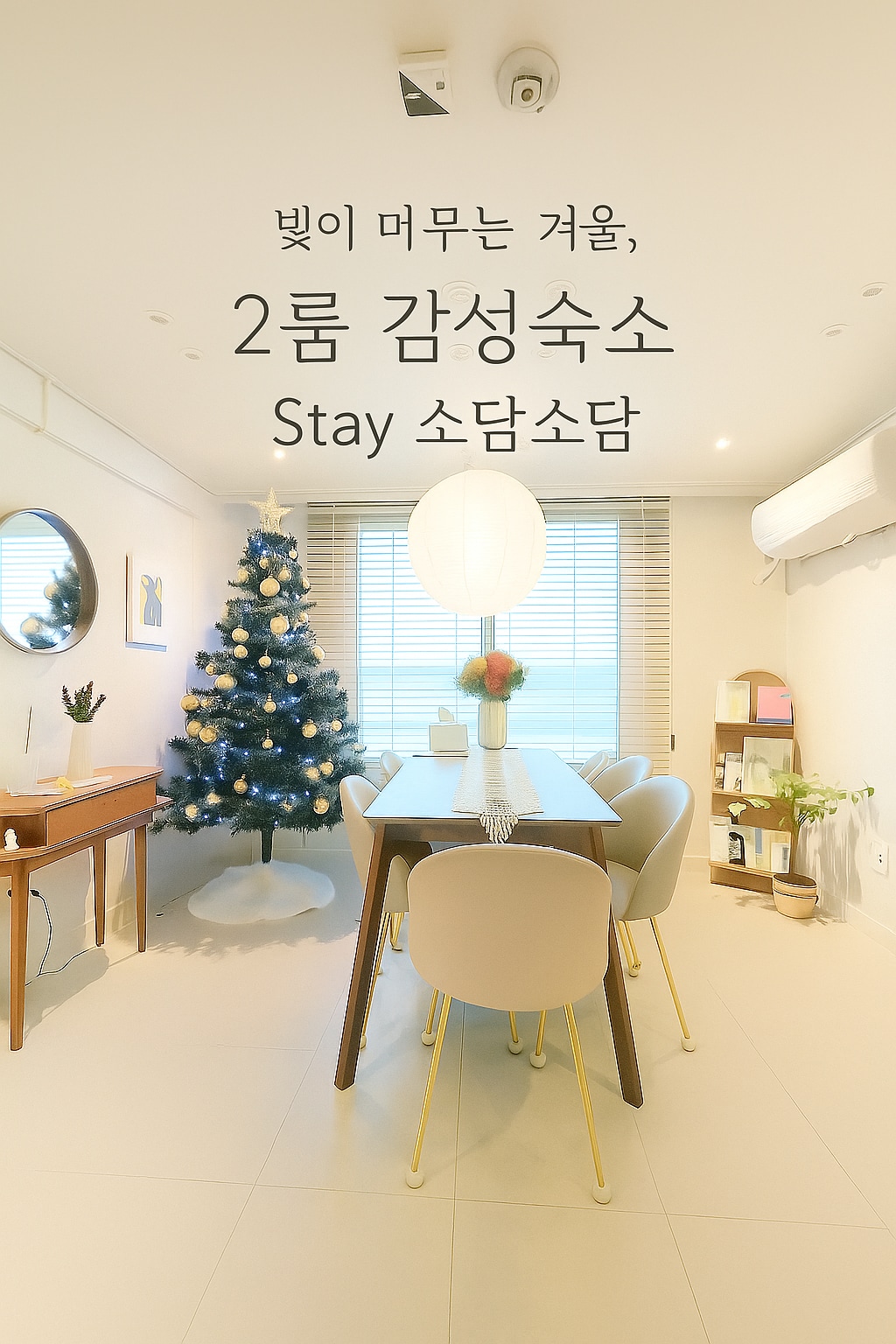 💛 11월 평일 한정 혜택 (Weekday Special Gift) 조용한 평일의 여유를 즐기시는 게스트분들을 위해 (일~목) 숙박 시 대전의 로컬 디저트 ‘꿈돌이 호두과자 4구 세트’ 🎁를 웰컴 기프트로 준비했습니다. 또한 평일 숙박 게스트께는 퇴실 시간을 1시간 연장(12시 체크아웃)해드려 느긋한 아침과 여유로운 오후를 즐기실 수 있습니다. (금·토 숙박은 기존 기준(11시 체크아웃)으로 운영됩니다.) 🌿 2박 이상 연박 시 9% 할인 혜택이 적용됩니다. 스테이 소담소담은 대전 중구의 조용한 골목 속, 햇살이 머무는 포근한 감성 투룸 숙소입니다. 화이트&우드톤의 정갈한 인테리어와 부드러운 햇살, 향긋한 차 한 잔의 여유가 어우러진 공간으로 바쁜 일상에서 벗어나 잠시 쉬어가기 좋습니다. 최대 6인 숙박이 가능하며,퀸사이즈 침대 3개, 주방, 세탁기, 셀프체크인, 무료주차(1대) 등 편의시설이 완비되어 있어 가족, 친구, 출장 게스트 모두에게 적합합니다.