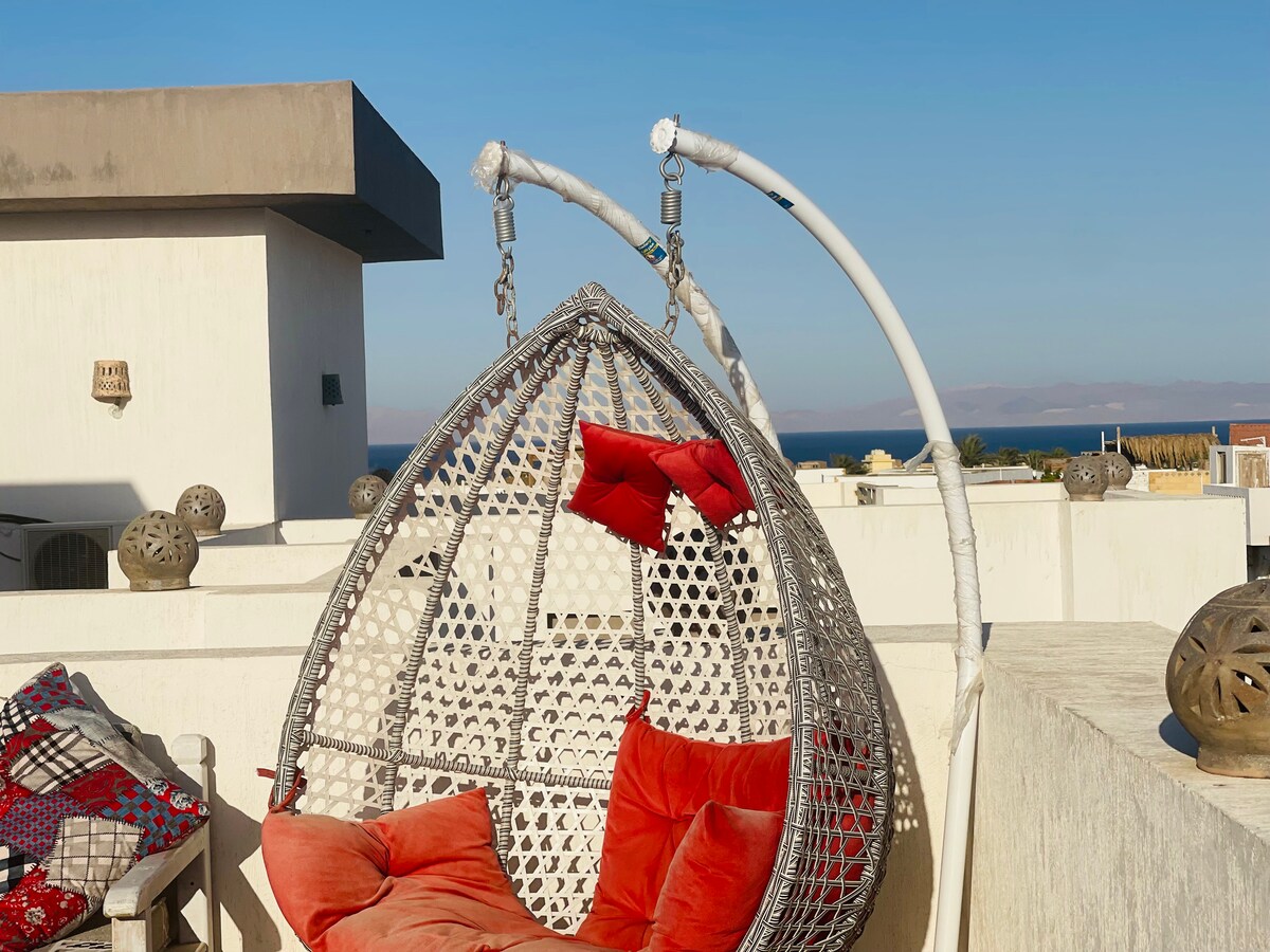 We call it the place that facilitates your living in Dahab. You want Center location overlooking a sightseeing like the Lagona Beach, quiet neighborhood but still walking distance "15 min" to the famous Mamsha where the hype is, discounts on excursions and retailers, clean modern-style fully-furnished place with functional premium appliances, good vibes in the house and affordable. The place hosts all the wish list, and offers it in the most professional interesting GUEST EXPERIENCE.