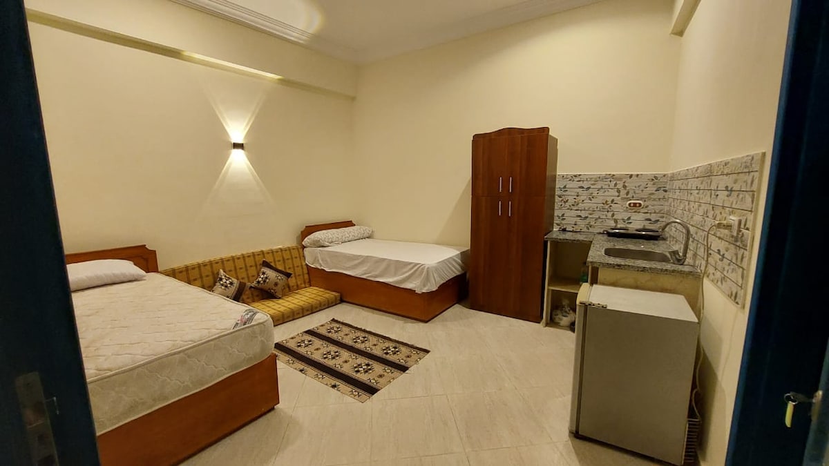 GANESHA BEACH APARTMENTS first line villa sa gitna ng Assalah shore. Naglalaman ang villa ng 4 na magkahiwalay na apartment. Matatagpuan ang Apartment na ito sa unang palapag ng aming villa. Mangyaring tandaan ayon sa batas ng gobyerno ng Egypt na HINDI PINAPAHINTULUTAN ANG MGA MAGKAKAHALONG KASARIAN na manatili sa isang apartment maliban kung sila ay mga miyembro ng pamilya at may dokumentadong katibayan. (bagama 't puwede ka pa ring mag - book ng 2 magkahiwalay na apartment sa tabi - tabi)
