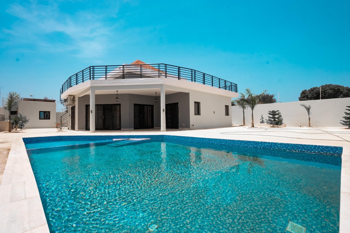 🌴 Modernong 180 sqm na villa na may pribadong swimming pool at terrace na may malawak na tanawin, 10 minutong lakad mula sa Toubab Dialaw Beach. Itinayo ito noong 2025 at mayroon itong 5 kuwarto (2 master suite) at 2 sala para komportableng makapagpatuloy ng hanggang 10 bisita. Mainam para sa mga pamilya o grupo ng mga kaibigan: may air conditioning, Wi‑Fi, kusinang kumpleto ang kagamitan, tagapag‑alaga sa lugar, housekeeper, at opsyong magkaroon ng personal na chef. Perpekto para sa tahimik na bakasyon nang may lahat ng kaginhawaan ng bagong tahanan.