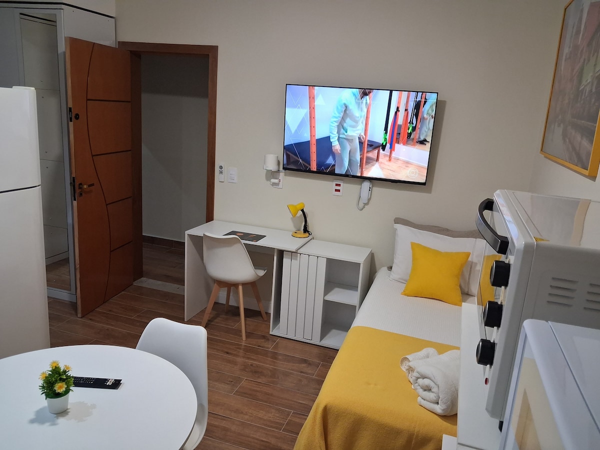 Studio a 350 m da USP. Smart Tv, internet 650 Mb.