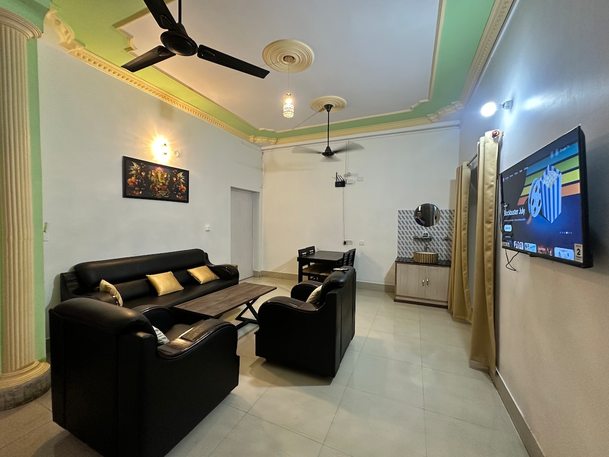 Maluwag at komportableng 2BHK flat na perpekto para sa mga pamilya at biyahero. Nagtatampok ng dalawang komportableng kuwarto na may King Size na mga higaan, AC, at aparador, modernong sala na may smart TV at sofa, kumpletong kusina, at dalawang malinis na banyo. Masiyahan sa natural na liwanag, mabilis na WiFi, isang tahimik na kapitbahayan, at madaling access sa mga tindahan at transportasyon. Mainam para sa mga panandaliang pamamalagi o pangmatagalang pamamalagi – ang iyong perpektong tuluyan na malayo sa tahanan sa Patna!