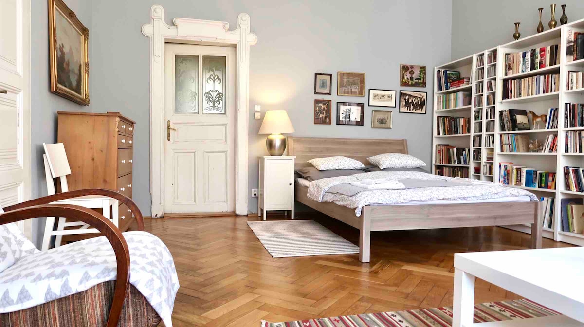 Very cozy, large apartment in a safe and nice location within walking distance (10min) from Wenceslas Square and the National Museum. The apartment is located a short distance from metro lines A, B, and C, which lead to the Old Town, Lesser Town, and Prague Castle. About 1min from the house is a popular tram stop, from which line no. 22 goes to all touristically popular parts. The area has excellent amenities! 24h check-in available. FREE SAFE PARKING in the underground garage 5min away.:))