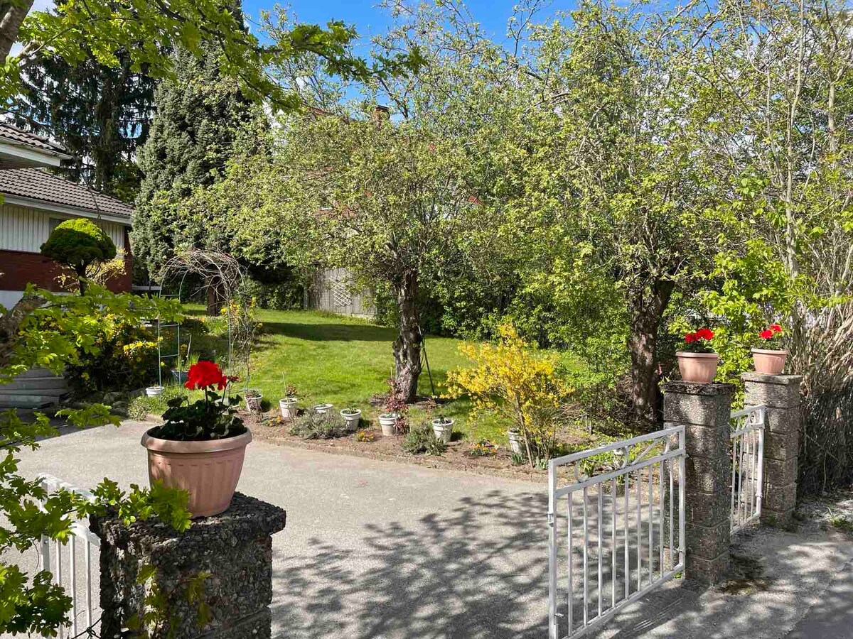 Matingkad na magandang bagong na - renovate na apartment sa ground floor ng villa, kung saan matatanaw ang hardin. Ang apartment ay ganap na self - contained na may sariling pasukan nito. 150 metro papunta sa lokal na bus na magdadala sa iyo sa mga tindahan at subway sa loob ng humigit - kumulang 5 minuto. Tahimik na residensyal na lugar, malapit sa tubig at kalikasan. 500 metro papunta sa beach ng Edsviken (dagat) at paglangoy, pati na rin sa 800 metro papunta sa kagubatan at mga track ng ehersisyo sa Rinkeby. Libreng paradahan ng kotse sa kalye.