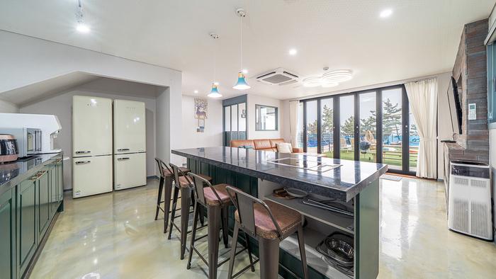 Gustong - gusto ito ng lahat, pero lalo na ang mga lalaking grupo na nasa 20s at 60s. Alam kong hindi ito gusto ng mga matutuluyan kapag nagpupunta ka bilang isang grupo. Na - optimize ang aming tuluyan para sa mga team ng grupo, kaya naaangkop ito nang maayos. Napakaraming espasyo... (20 tao mula sa isang board game club ang namalagi.) May karagdagang bayarin kada tao kung mahigit sa 4 na tao. Ang Space 1 ay may 40 - pyeong party room (pribadong paggamit) Space 1/Space 2 Ang bawat isa ay may silid - tulugan (10 pyeong × 2) sa ikalawang palapag. Mainit na ondol room ito. Available ang mga pasilidad ng Beam Project Karaoke. (Available ang mga seminar, workshop, at lektura) May damuhan sa labas, kaya cool ang iyong mga mata at puso. * Pag - install ng swimming pool sa loob ng limitadong panahon sa tag - init * (Hindi responsable ang host para sa kaligtasan) Ang kalan ng kahoy na cafe ay nagdaragdag ng marangyang hitsura. Puwede kang sumama sa iyong aso. (May karagdagang bayarin kung mapinsala ang sapin sa higaan) Ginagamit ang party room bilang coffee shop sa araw, kaya puwede itong gamitin nang mag - isa mula 4pm. Puwedeng gamitin ang mga pasilidad sa kusina. Available ang setting ng barbecue grill. (karagdagang bayarin)