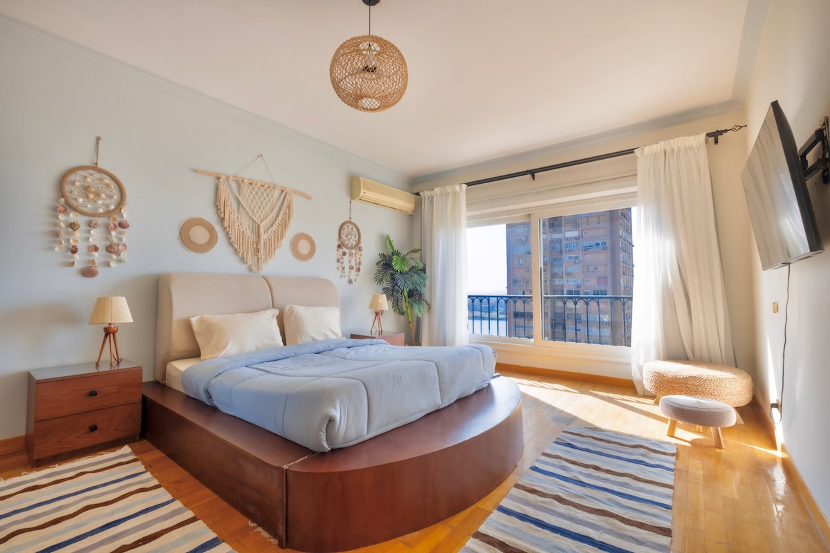 Apartment na may 3 Kuwarto at Tanawin ng Nile | Tahimik at Marangyang Matutuluyan