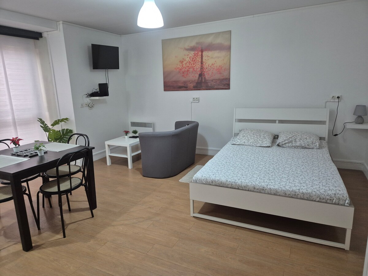 Maligayang pagdating sa kaakit - akit na ganap na muling idinisenyo at inayos na uri 2 apartment na ito, na matatagpuan sa gitna ng Mesnil Esnard na 10 minuto lang ang layo mula sa Rouen. Tamang - tama para sa isang business trip pati na rin ang isang bakasyon upang matuklasan ang Rouen at ang kapaligiran nito. Madaling paradahan sa kalye Sa paanan ng lahat ng mga tindahan (supermarket, mabilis at gastronomic restaurant, caterer, laundromat...) at ang F5 bus line na nagsisilbi sa sentro ng Rouen.