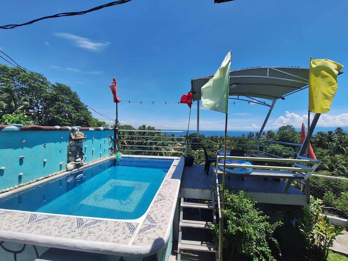 Mangonga residence Townhouse overlooking is a comfy rest house that sits on top of a hill giving you a beautiful and relaxing view of the Davao Gulf. It is a 2 bedroom house, with living and dining areas. It is provided with utensils and cooking tools to prepare your meals just like home. To complete your vacation trip, there is a mini pool to beat the heat! We also have a mini bar where you can have your refreshing drinks, order snacks and meals! Truly a place worth staying!