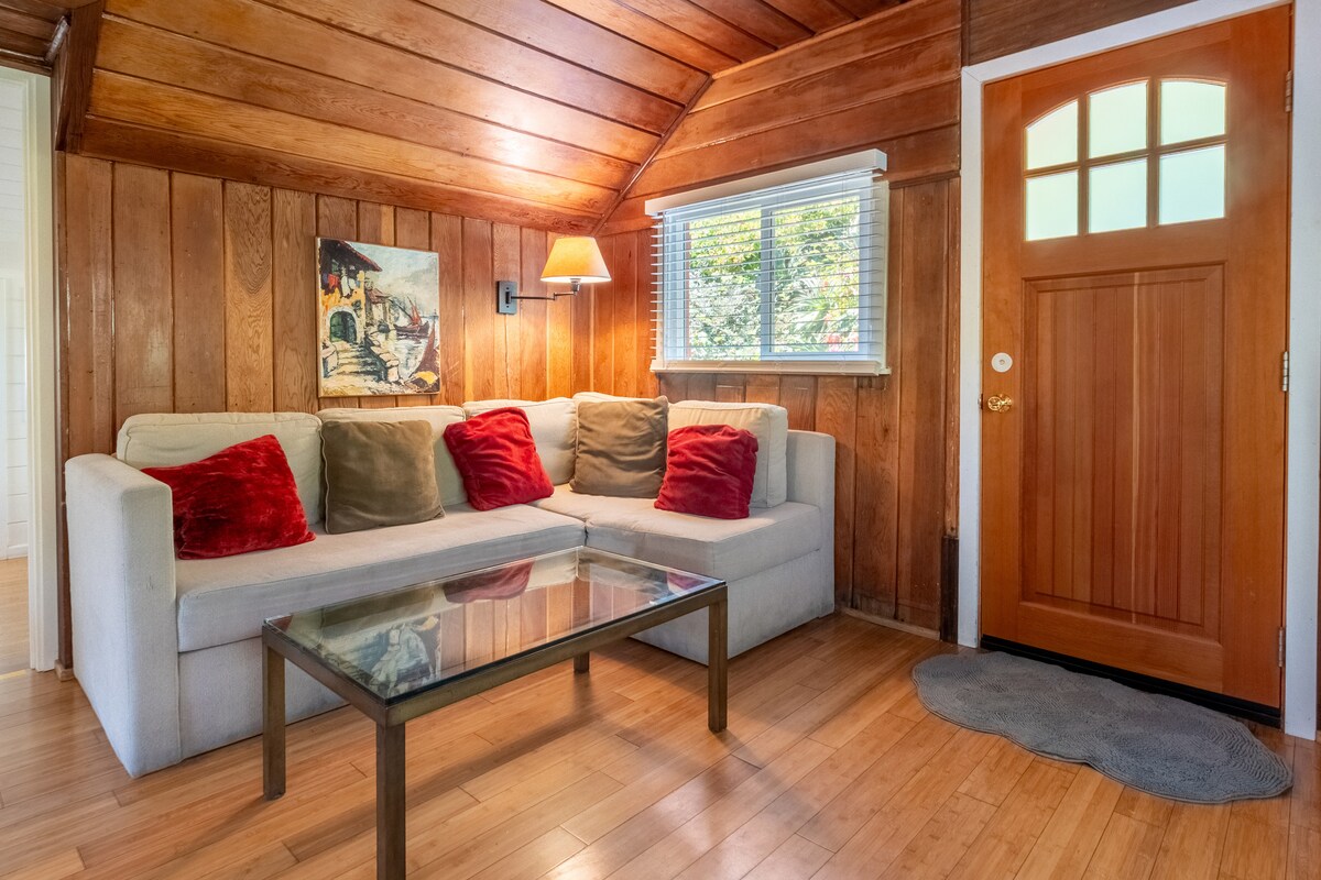 Itinayo ang cottage na tulad ng gingerbread (600 talampakang kuwadrado) mula sa lumang redwood ng paglago noong 1922. Mula nang na - remodel sa lahat ng amenidad. Isang pribadong santuwaryo, na nakatayo at nakatago sa kalye. Dalawang bloke ang naglalakad papunta sa karagatan sa daanan na may puno sa tahimik na kapitbahayan sa kanlurang bahagi. Tahimik at tahimik, magandang deck at hardin sa labas. Kalahating milya mula sa pagpili ng pagtikim ng boutique wine, mga brewery, at mga coffee roaster. Humihingi kami ng paumanhin dahil hindi kami makakapag - host ng mga batang wala pang 5 taong gulang para sa mga kadahilanang pangkaligtasan. 2 gabing minimum