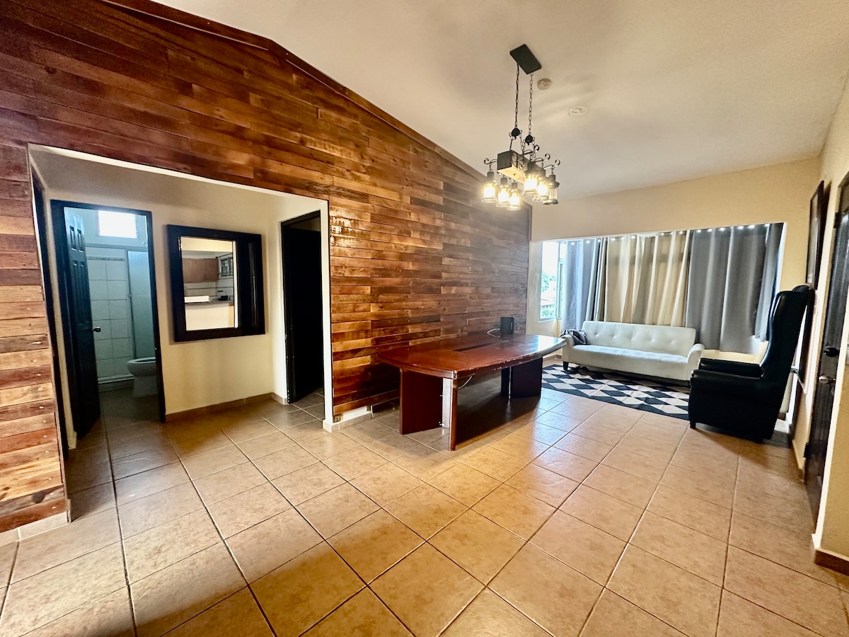 Pakiramdam mo ay nasa marangyang suite ka sa maluwag, elegante, at komportableng apartment na ito. Ang iyong kotse ay nasa ligtas at pribadong lugar na may perimeter na bakod at mga panseguridad na camera. A/C at WiFi sa buong apartment, 2 smart TV. Magkakaroon ka ng kusinang kumpleto ang kagamitan. Wala pang 2 minuto sa pamamagitan ng kotse, makakahanap ka ng mga bar, restawran, warehouse, cafeteria, bangko, supermarket, parmasya, at marami pang iba. 50 metro lang ang layo mo mula sa inter - American highway at 2 minuto mula sa Boquete at Tierras Altas highway.