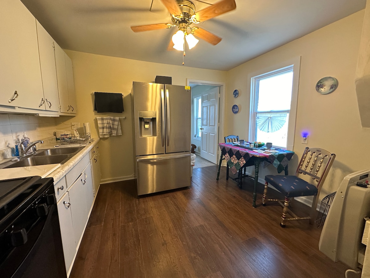Malapit sa lahat ang iyong pamilya kapag namalagi ka sa sentral na lugar na ito. Ang kakaibang tuluyan na ito ay may kumpletong kusina, silid - kainan, labahan, at bagong ayos na banyo. Mayroon itong 2 maliit na silid - tulugan na may kumpletong kama at king size bed sa sala. Ang back deck ay napaka - pribado at natatanging itinayo sa paligid ng mga puno. May libreng Wifi, pero walang TV. Hindi puwedeng manigarilyo sa loob o sa labas ng property na ito.
