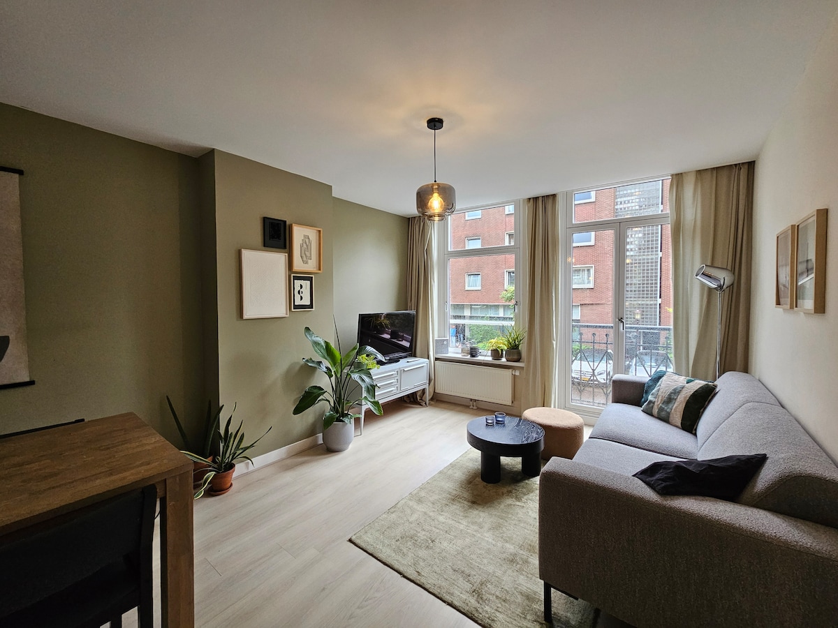 Mag - recharge mula sa buzz ng Amsterdam sa komportableng apartment na ito, na nilagyan ng lahat ng iyong pangunahing pangangailangan. Matatagpuan sa tahimik na bahagi ng bayan, magandang lugar ito para matulog nang maayos at magkaroon ng tahimik na almusal sa balkonahe. 10 -15 minuto lang ang layo ng apartment mula sa sentro at napapalibutan ito ng ilan sa mga pinakasikat na restawran, cafe, at coffee spot sa lungsod. Ayaw mo bang maglakad? Pinapadali ng mga opsyon sa pampublikong transportasyon at mga matutuluyang bisikleta sa malapit na i - explore ang lungsod sa sarili mong bilis.