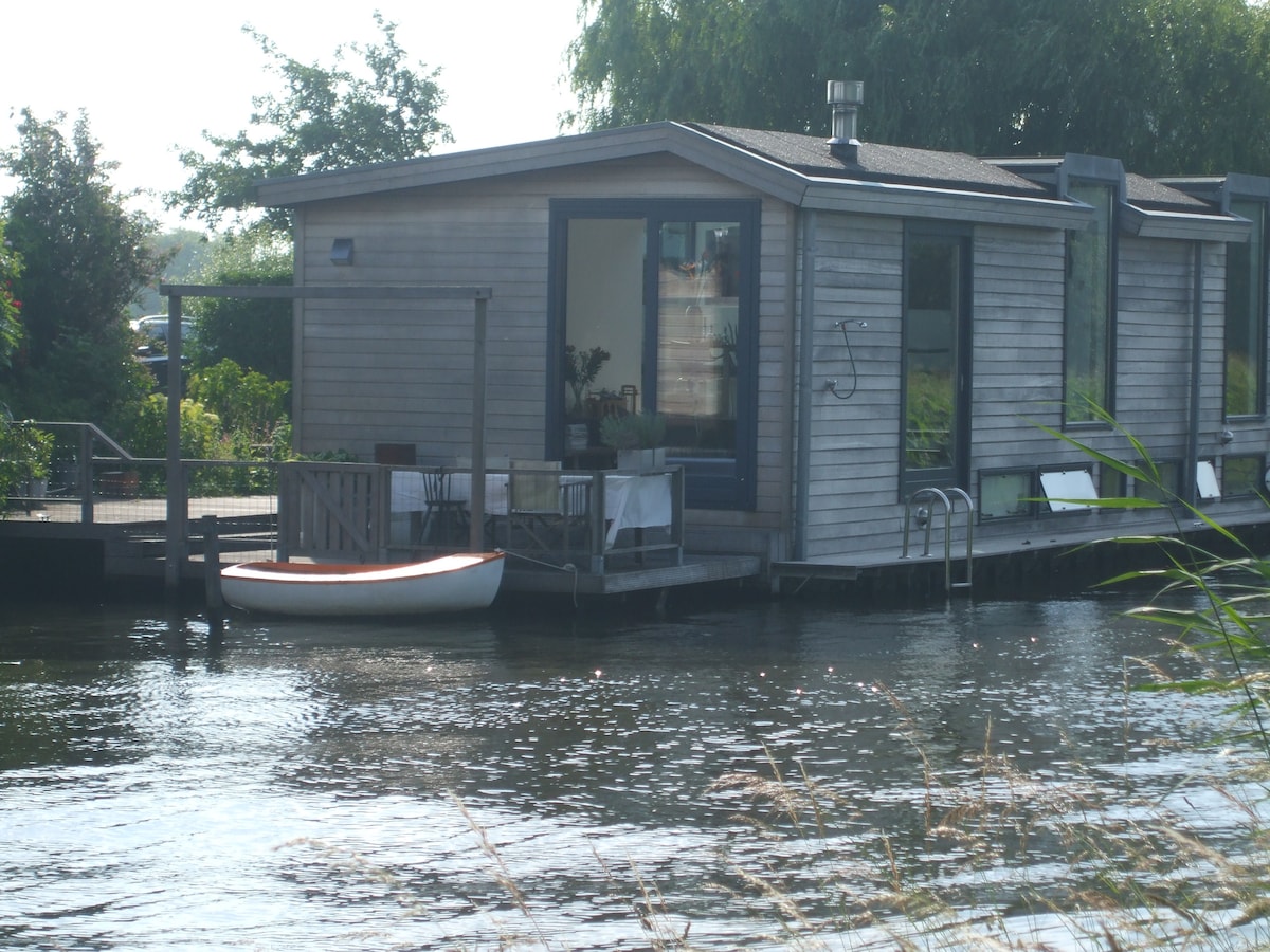 Sa 20 minuto mula sa Amsterdam makikita mo ang Vinkeveen Lake. Ang woodstove sa loob ay nagbibigay sa iyo ng higit na pagiging komportable habang napapaligiran ng kalikasan. Ang bahay na bangka ay nasa isang isla sa isang magandang lugar para sa lahat ng uri ng aktibidad. Isang perpektong lugar para sa isang holiday sa Amsterdam, Utrecht at Rotterdam sa iyong diposal. Kung gusto mong gamitin ang guesthouse na may dagdag na banyo/toilet, mag - book para sa 6 na bisita. Walang bayad ang paggamit ng de - kuryenteng bangka at available ang libreng wifi. Walang pag - check out sa Linggo, magtanong ๐