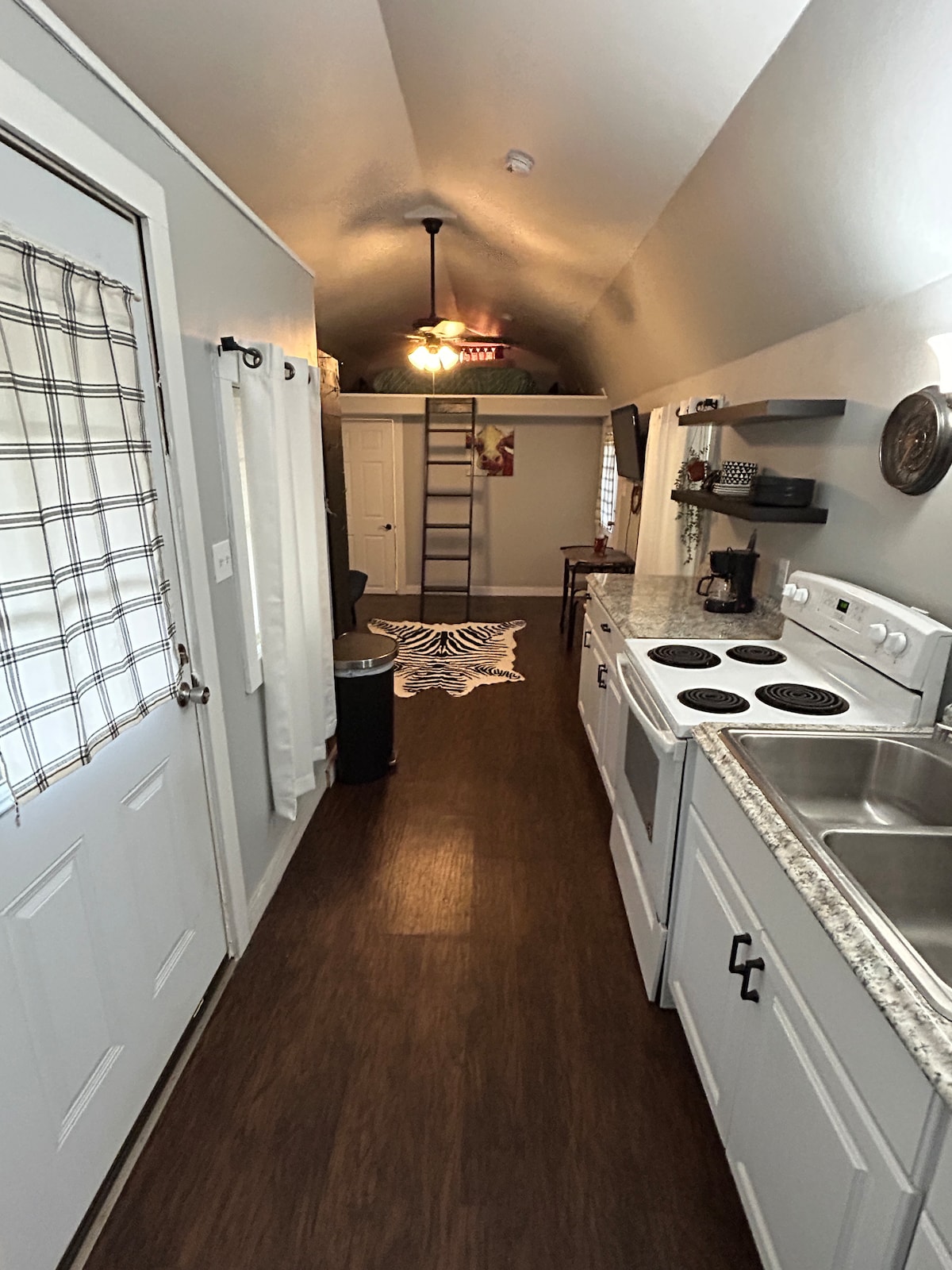 Tangkilikin ang iyong unang karanasan sa munting bahay sa 400 talampakang kuwadrado na cabin na ito na 15 minuto lang ang layo mula sa beach at malapit lang sa Dead Lakes! Masiyahan sa kusina at banyo na may kumpletong sukat, bukas na sala na may TV at dining table, beranda sa harap para sa pagrerelaks, WiFi, at marami pang iba! Futon para sa dagdag na bisita sa ibaba. Queen size na higaan sa matataas na kuwarto. Mga dobleng saksakan sa magkabilang gilid ng higaan at bintana ng loft para mamasdan! Perpekto para sa iyo at sa iyo!