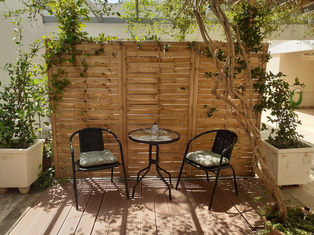 Minimal suite, bagong na - renovate na 10 minuto mula sa paliparan. Malaya na may pribadong banyo, terrace, hardin at mga kamangha - manghang tanawin. Ang eleganteng disenyo at modernong estilo nito ay magbibigay sa iyo ng hindi malilimutang karanasan sa pamamalagi. Matatagpuan sa burol, malapit sa: - Metropolitan Expo (10 minuto), - daungan ng Rafina (15 minuto), - Smart Park - Zoological Park - Metro Stop Mainam para sa mga holiday, pamimili, business trip, o mga taong gustong magtrabaho nang digital gamit ang mabilis at libreng wifi.