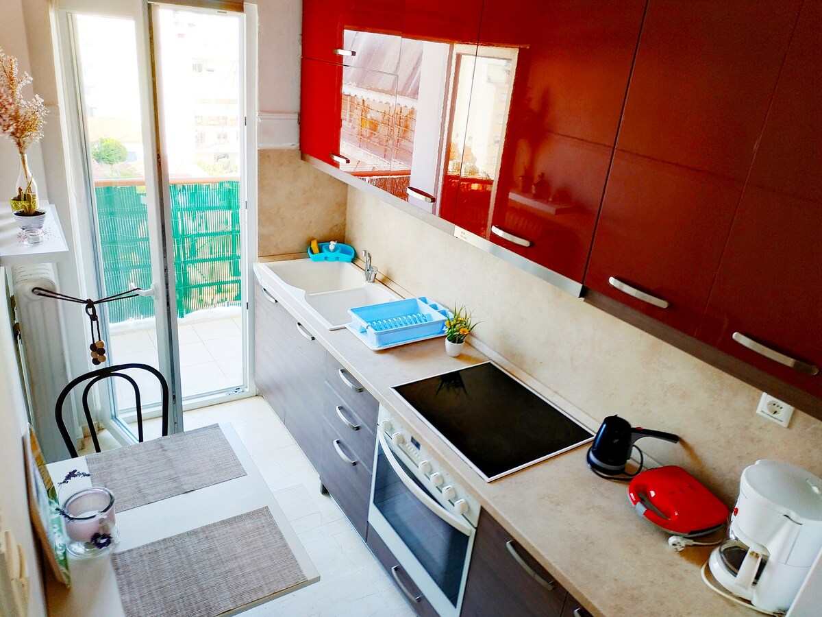 Maliwanag at Nakakarelaks na Studio, sa ika -6 na palapag, na ganap na na - renovate noong 2022 na may malaking pribadong terrace area, sa isang ligtas at magandang kalapit na lugar, 5 minuto ang layo mula sa Nea Smyrni Square nang naglalakad. Makakakita ka ng maraming coffeteries, bar, restawran at suvlaki. May tram (Megalou Alexandrou) at istasyon ng bus (sa Syggrou) na humigit - kumulang 5 minutong lakad na maaaring magdadala sa iyo sa beach o sa sentro ng Athens (mga 15 minuto). Maaari mo ring bisitahin ang Nea Smyrni grove, wala pang 10 minuto ang layo sa paglalakad.