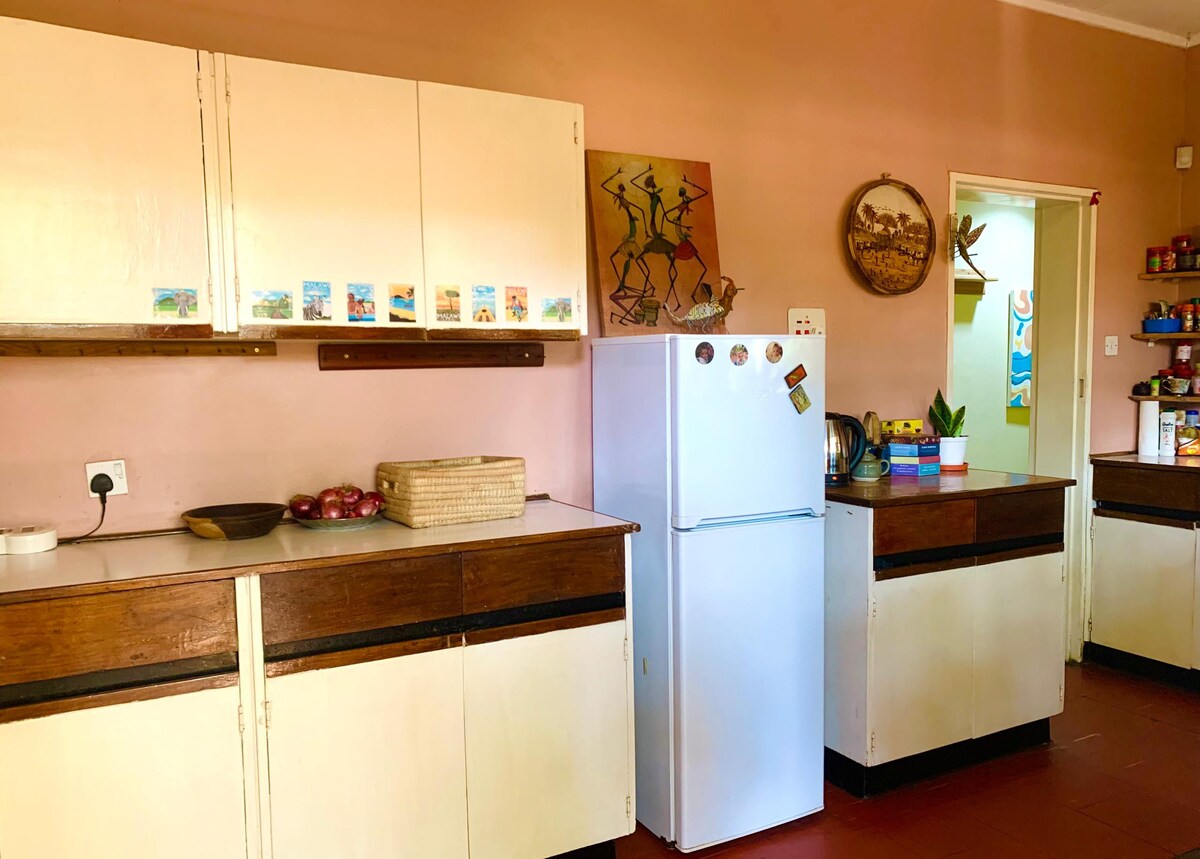 Pinangalanan mula sa dalawang pader na gawa sa mga recycled na bote ng salamin, ang The Glass Bottle Cottage ay isang self-contained at kakaibang cottage sa Area 10, Lilongwe. Ito ay isang perpektong kanlungan para sa mga taong naghahanap ng ibang bagay. Nagtatampok ito ng tuluyan na malayo sa tahanan, bumibiyahe ka man para sa negosyo o kasiyahan. Nasa parehong site ng Kaza Kitchen, puwede kang sumali sa 'buzz' kung saan nasisiyahan ang mga tao sa pagtanghalian, pagbrunch at pagtatrabaho. O kaya, mag‑enjoy sa tahimik na sulok mo. Libreng internet at back‑up na kuryente.