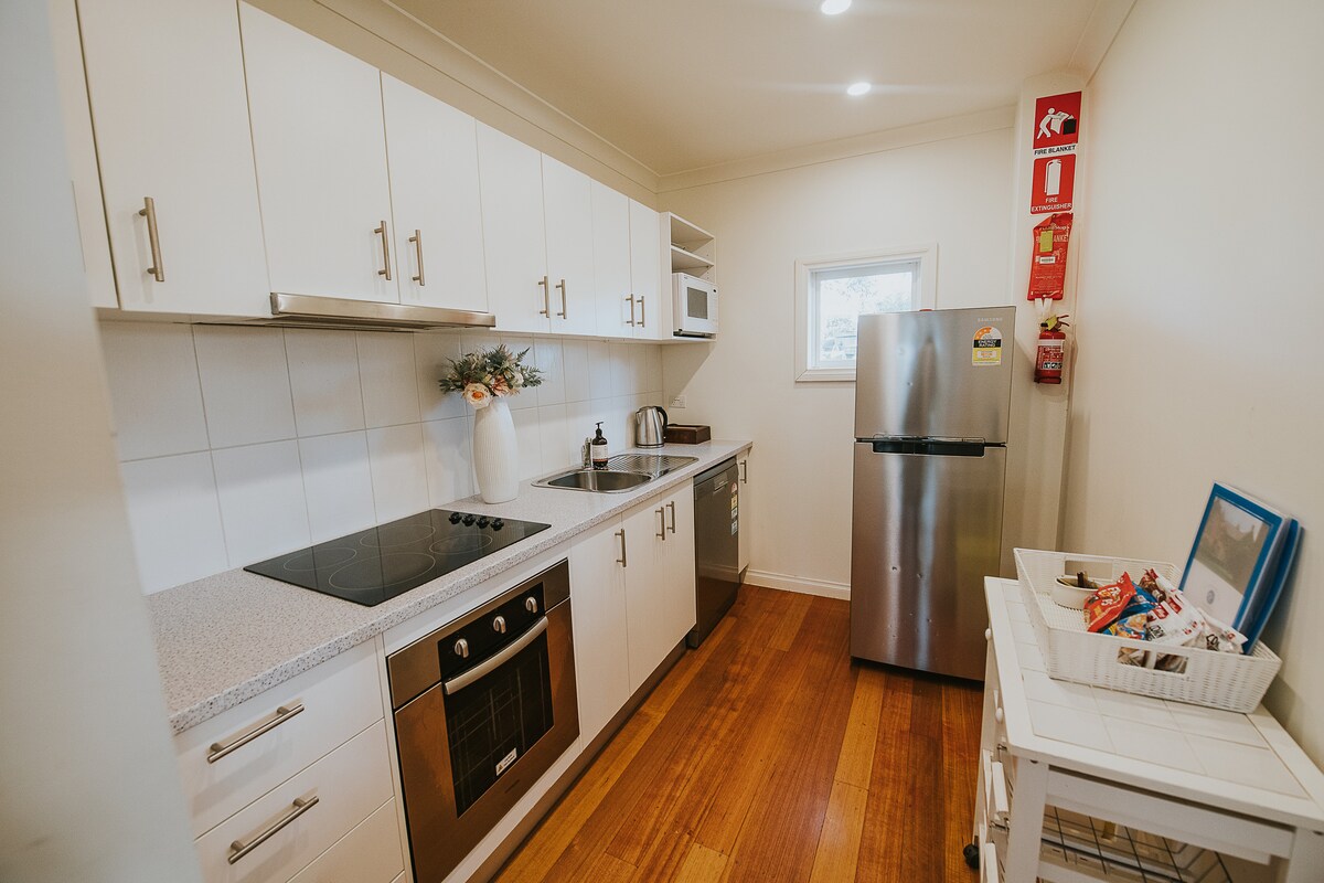 SELF-CONTAINED STUDIO with PRIVATE ENTRY and COURTYARD. Less than 15min drive to Melbourne Airport and 25-30min to CBD. Easy SELF-CHECK IN with an electronic door lock. ◈ Full-size Kitchen ◈ Comfortable Queen Bed ◈ Modern Bathroom ◈ Dining and Retreat ✔Air-conditioning ✔Free Wi-Fi ✔TV+Chromecast Our Studio located in a quiet safe area with the nice neighbourhood, great for an evening walks, further away from busy night life and loud parties. Perfect for Business travellers or Romantic stay