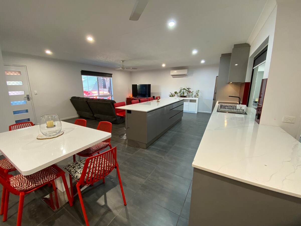 This Guest House is a new build with stylish and comfortable furnishings perfect for a single person, couple or a family of 5 travelling or working in Townsville, QLD. Fully self contained with thoughtful additions to make your stay comfortable and convenient. Located: - 300 m to a Supermarket, GP, Barber, Bottle shop & Pharmacy - 9.5km to Queensland Country Bank Stadium (Home Stadium to the Cowboys) - 10.7km to The Strand - 1.5km to the Mount Louisa Walking Track & lookout.