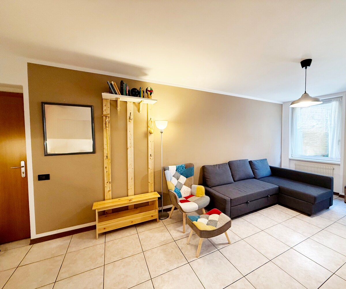Sa gitna ng Dimaro, madiskarteng inilagay, para masiyahan sa mga sports sa taglamig at tag - init ng Val di Sole. Malaking maliwanag na apartment na may dalawang kuwartong may nakalantad na sinag, sa tahimik na lugar ngunit malapit sa lahat ng pangunahing amenidad (supermarket, parmasya, istasyon ng tren, daanan ng bisikleta, karaniwang restawran, souvenir shop, pastry shop, hairdresser, sports shop, ski rental, ski school, atbp.). Mainam para sa mga mahilig sa sports sa taglamig at tag - init.