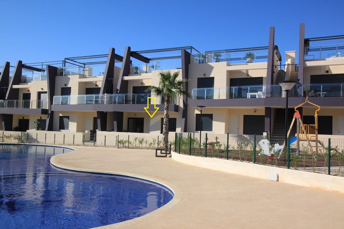 Maaliwalas at magandang apartment sa tabing - dagat sa eksklusibong lugar ng Dehesa de Campoamor. May magagandang tanawin ito ng dagat, beach, at likas na halaman ng lugar. Matatagpuan ito sa tabi ng marina ng Campoamor at ng beach ng La Glea, na mapupuntahan nang 1 minutong lakad (50 metro). Ang Dicha playa ay may lifeguard, 2 terrace restaurant kung saan matatanaw ang dagat pati na rin ang lugar na may kapansanan na may mga kawani ng suporta, water sports, palaruan at palaruan.