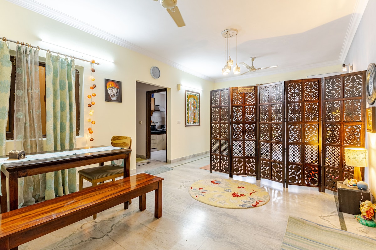 Welcome to our serene & spacious retreat ! It was a home first & later converted to an Airbnb. That explains the warmth & attention to the little details. The residence has modern amenities and a calm vibe. The well ventilated 2 BHK apartment is housed in a peaceful society , with lychee & mango trees reminiscent of good old Dehradun. The location is central, walking distance to Rajpur road , cafés & a mall. Enjoy a lovely stay in a clean and a calm home. Well equipped for your comfort.