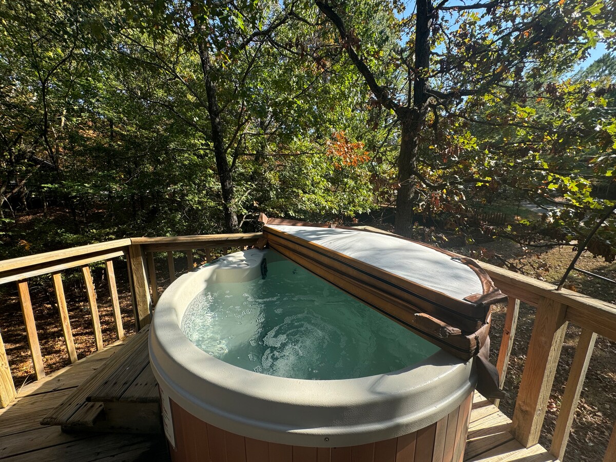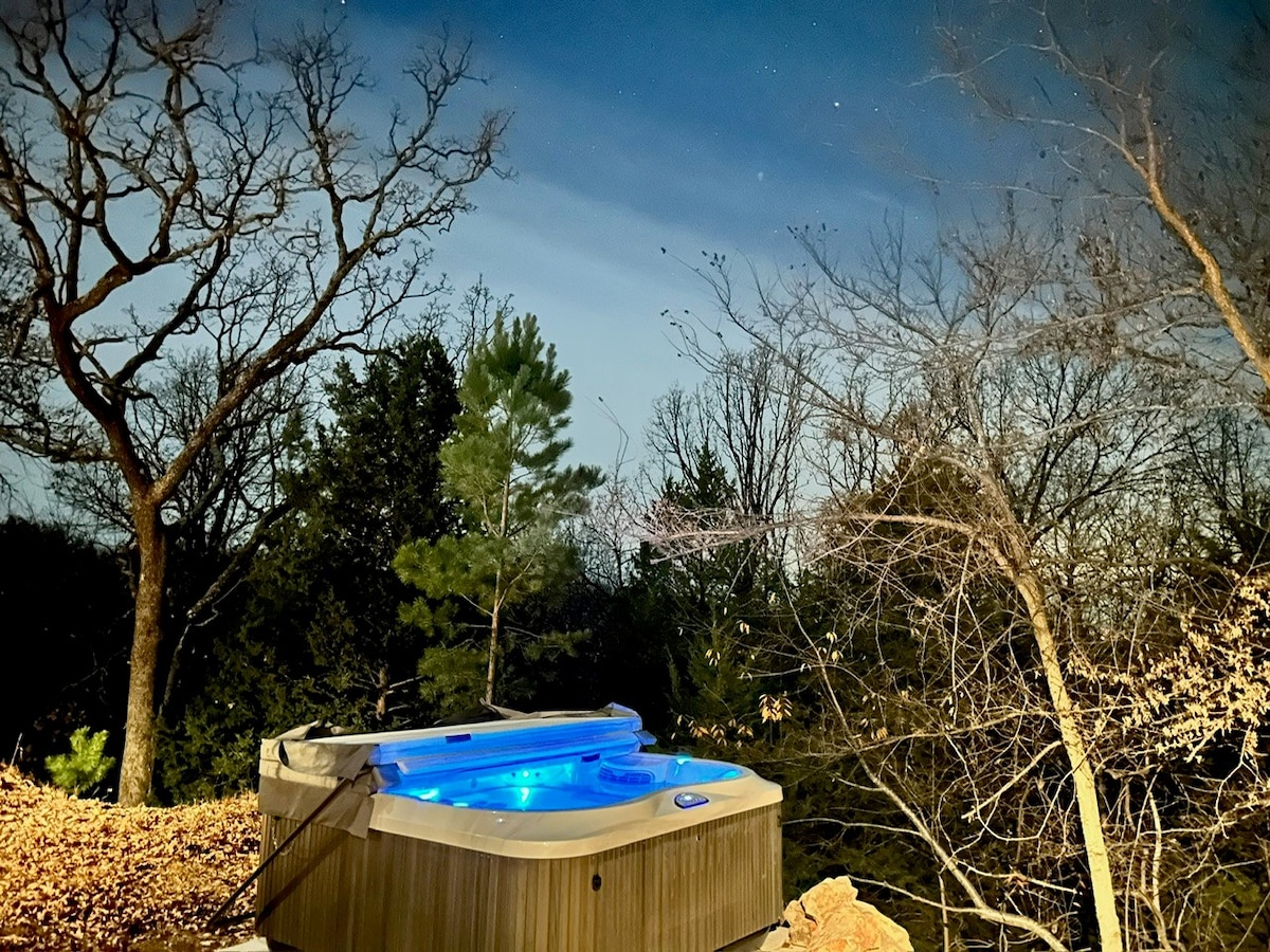 Welcome sa Wilderness Retreat namin—isang Bakasyunan sa Oklahoma Ozark na may kasamang adventure. Sa gabi, nagiging nakakabighaning kanlungan ang kuweba ng property na may maliliwanag na ilaw at mesa para sa dalawang tao. Mag-enjoy sa hot tub na may aromatherapy, lumulutang na kandila, at malalambot na tuwalya, magrelaks sa tabi ng fire pit, o maglakad sa magagandang daanan. Ayos lang sa amin ang 420 at mga alagang hayop, at perpekto para sa mga magkarelasyong gustong magkaroon ng di‑malilimutang karanasan. May mga add‑on na tulad ng rosas at strawberry na may tsokolate