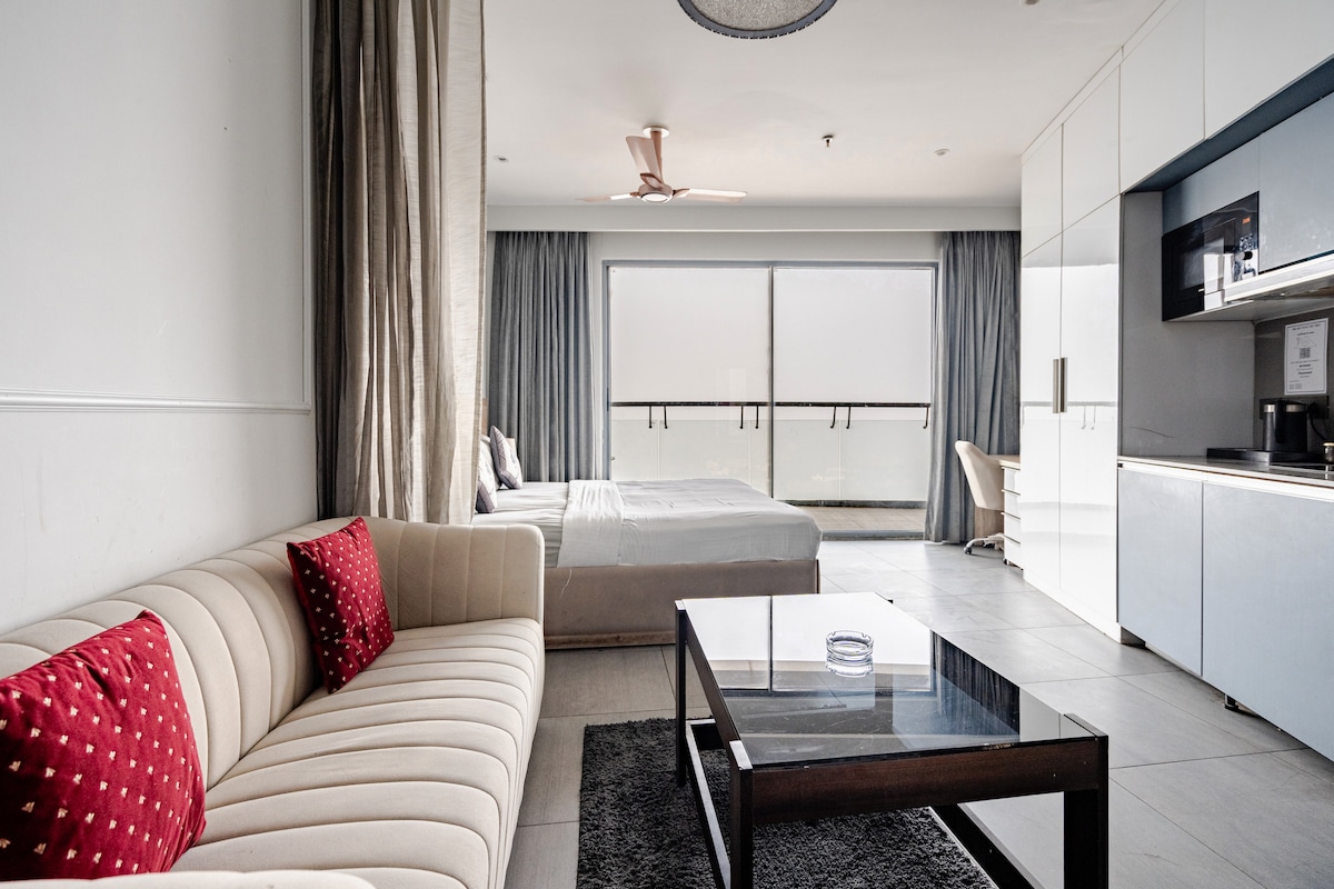 Float above the city at this peaceful, high-rise sanctuary with panoramic views of the Yamuna River and skyline. Whether you're on a romantic escape, work trip, or staycation, Cloud 33 is designed for both comfort and style. ✔ Prime Location – Only 100m from the metro for easy city access ✔ Scenic Views – Private balcony with river + skyline sunsets ✔ Ideal for Couples & Professionals – Cozy, modern, fully-equipped