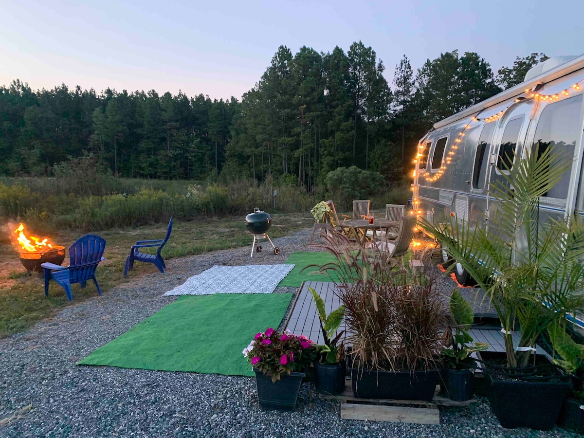 Relax in a vintage Airstream! Listen to songbirds, watch deer, foxes & bunnies. Enjoy meals surrounded by nature. Lounge on a patio sofa. Explore our gently maintained woodland trails & farm path and don't miss the brilliant sunrises and sunsets. Loblolly Landing is just outside of Salisbury at the end of a closed road by the airport. Nestled in five acres of mixed pines, this rustic hideaway is a perfect blend of seclusion and convenience while being only five minutes from major highways.