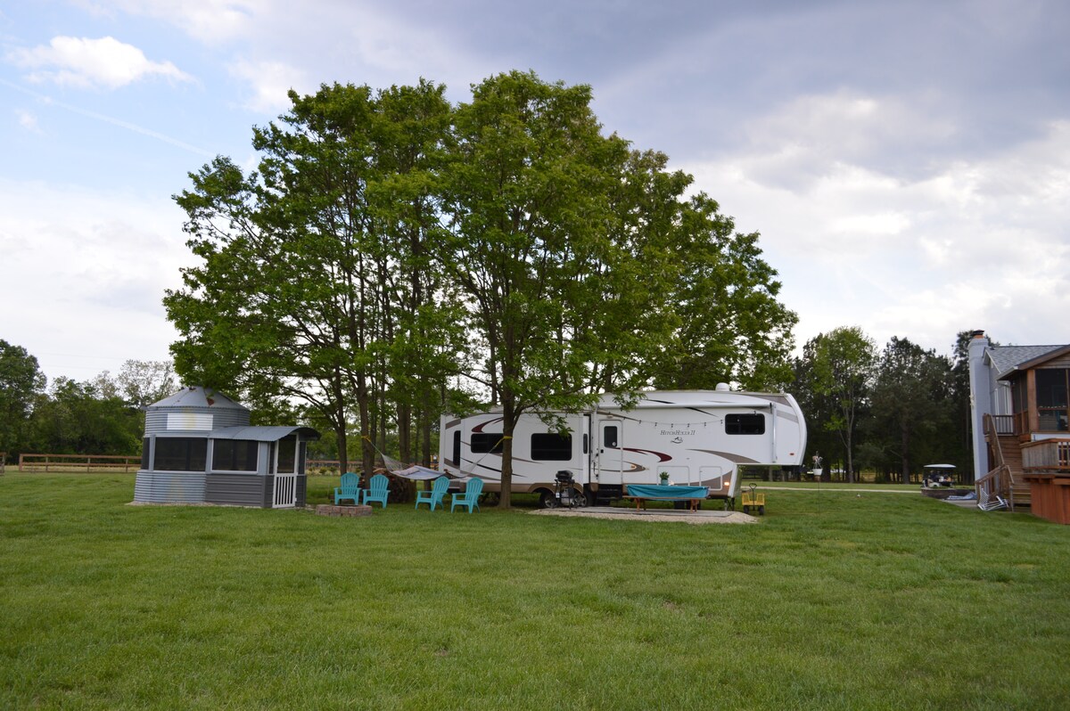 Camper with Gazebo and Fireplace